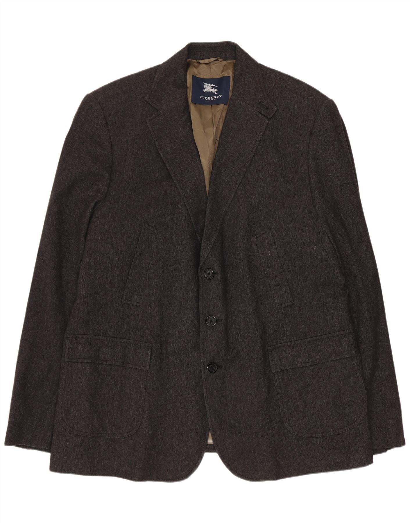 Burberry Mens 3 Button Blazer Jacket UK 42 XL Grey Herringbone Wool