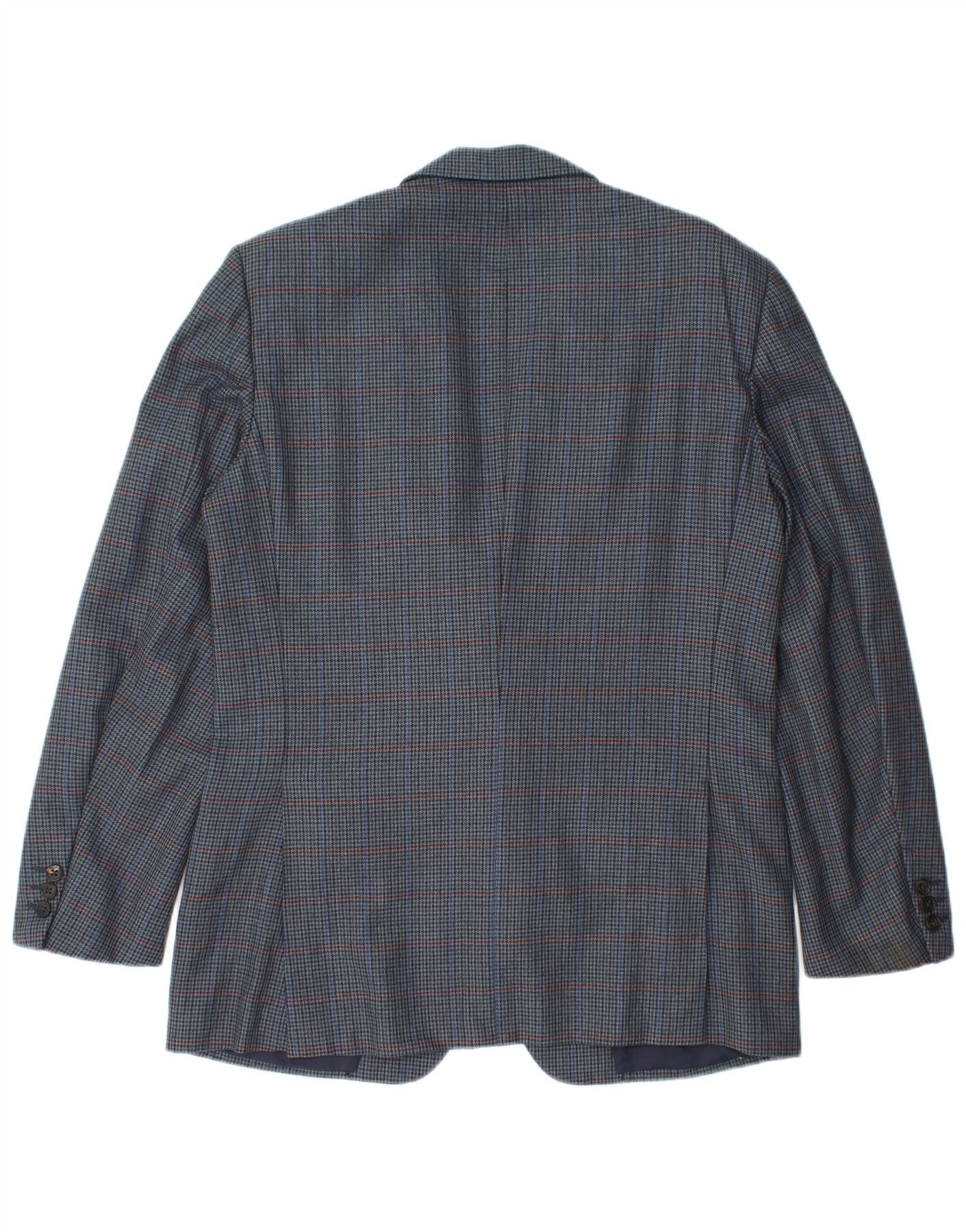 Burberrys Mens Blazer Jacket IT 48 Medium Navy Blue Houndstooth Wool