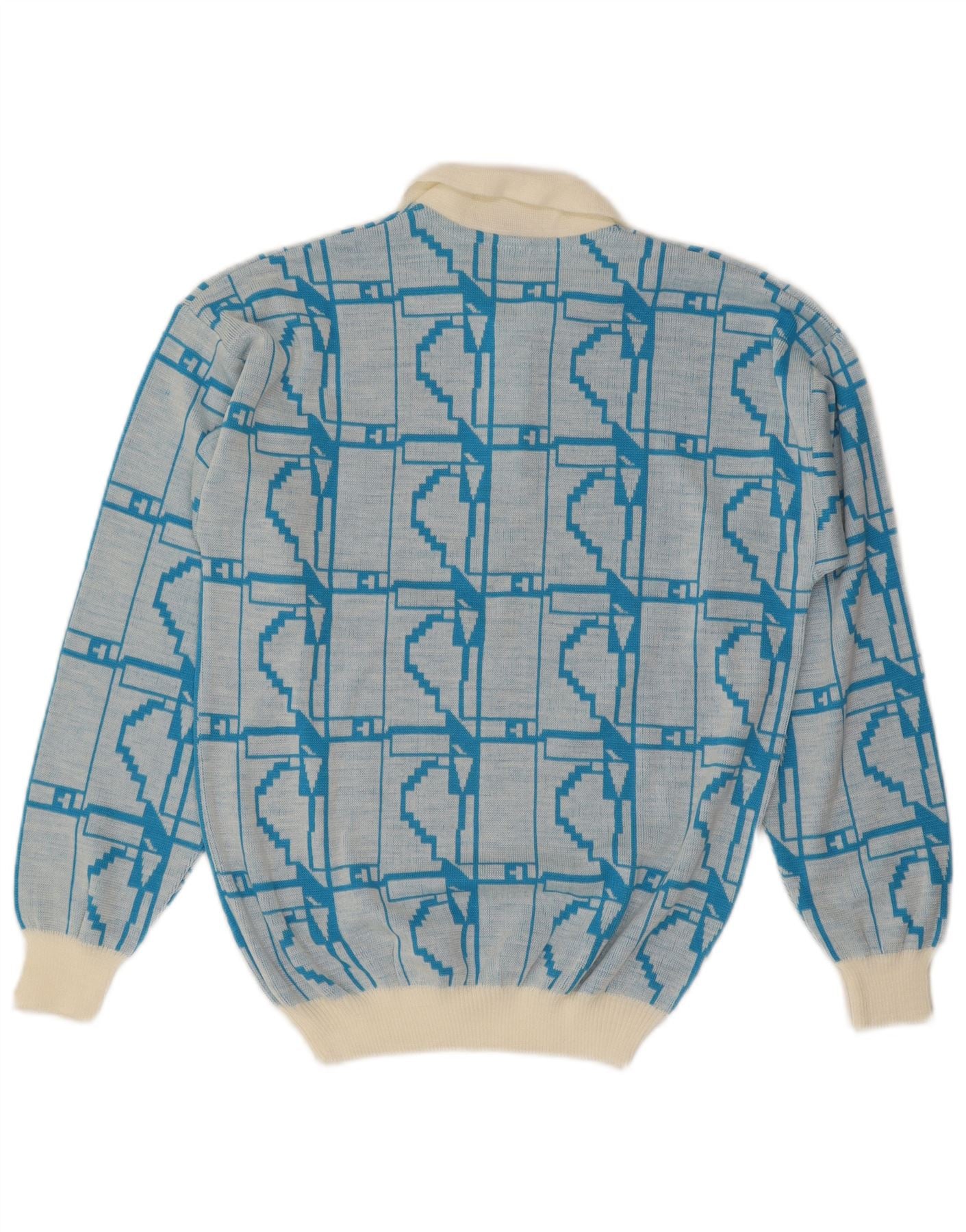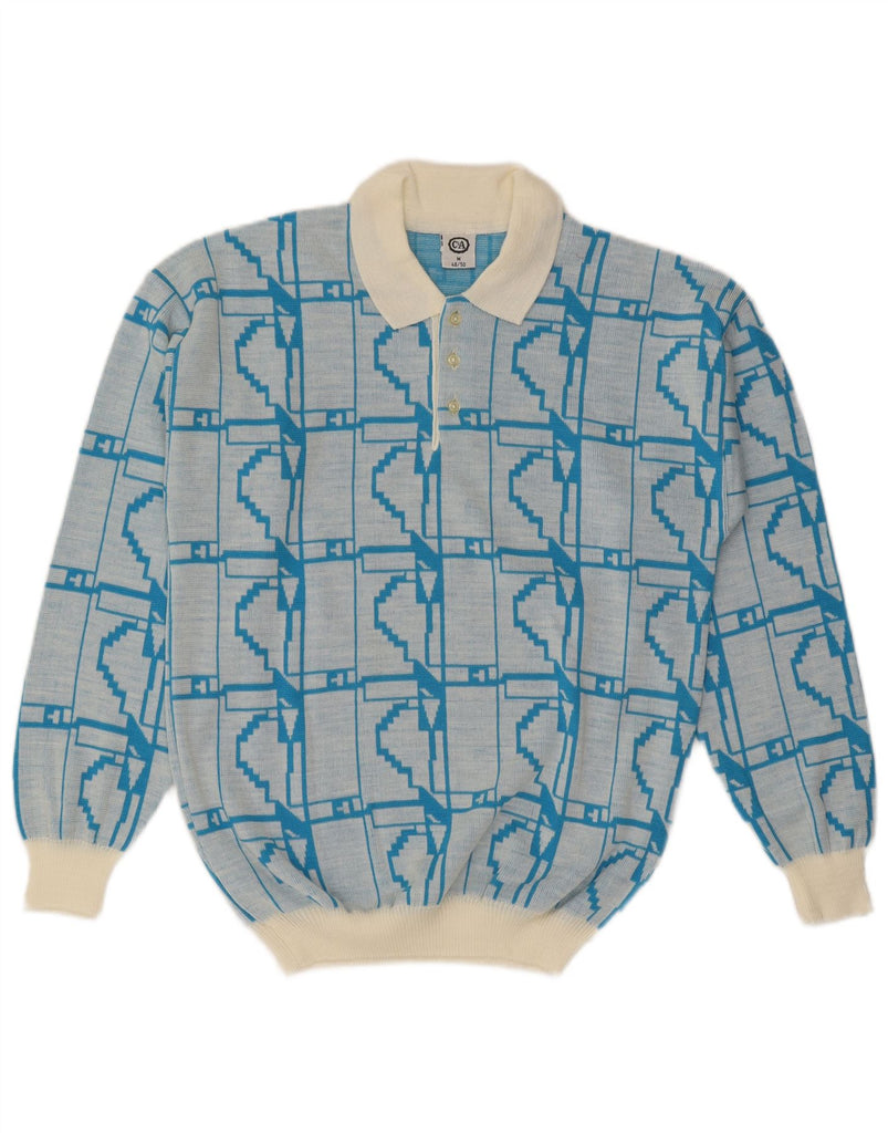 C&A Mens Polo Neck Jumper Sweater IT 48/50 Medium Blue Geometric