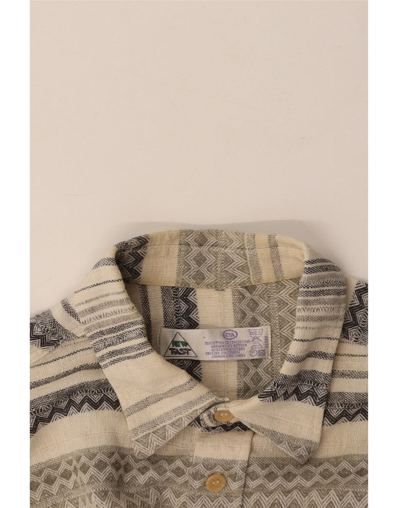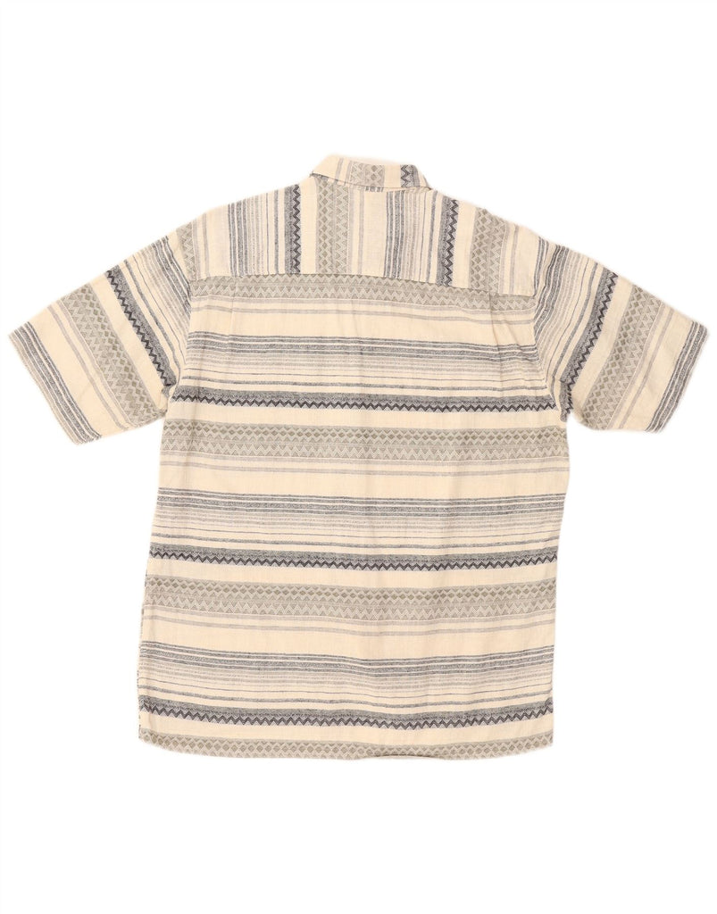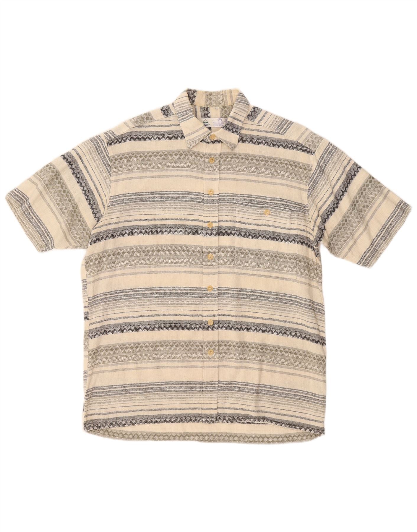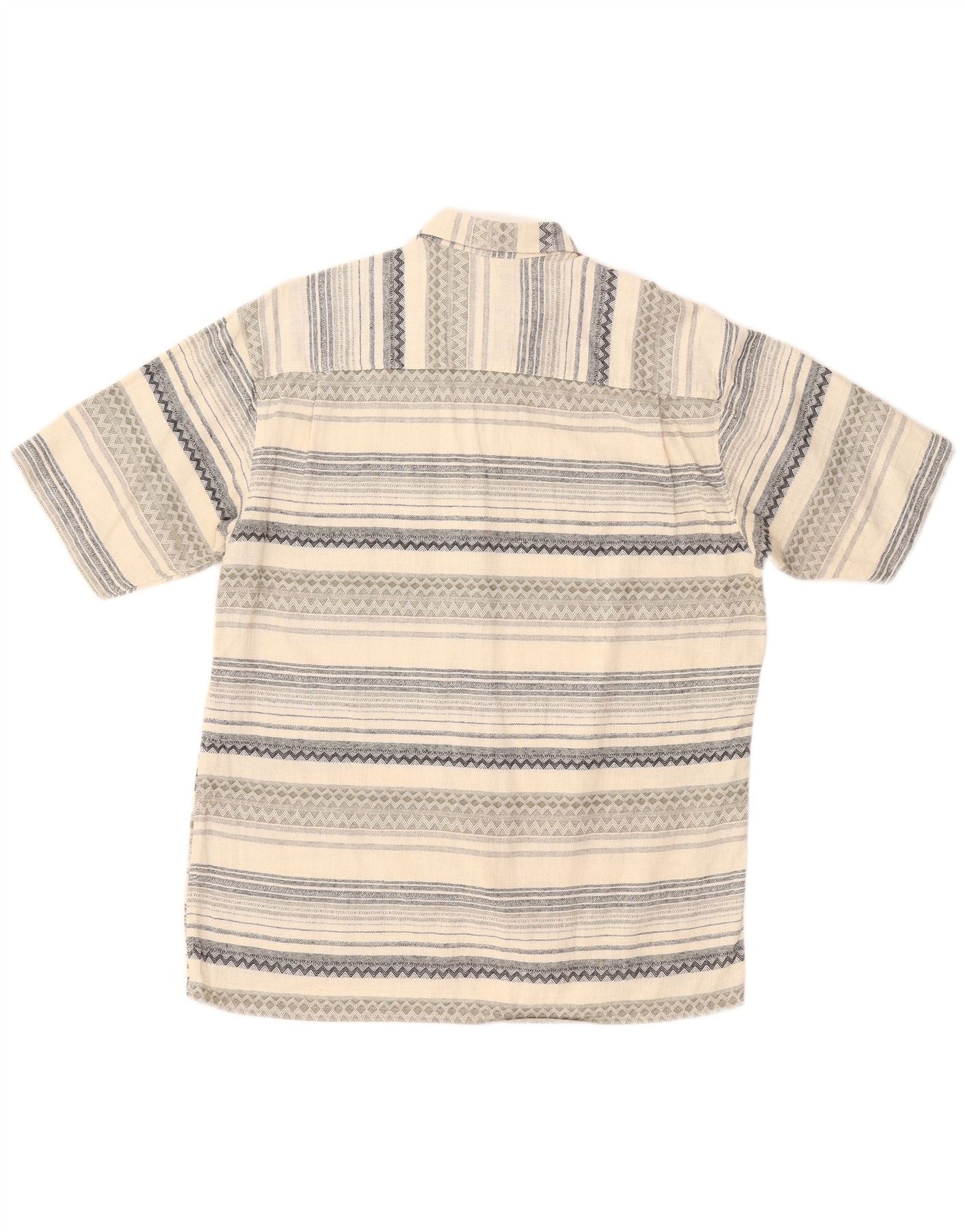 C&A Mens Short Sleeve Shirt Medium Beige Geometric Cotton Aztec