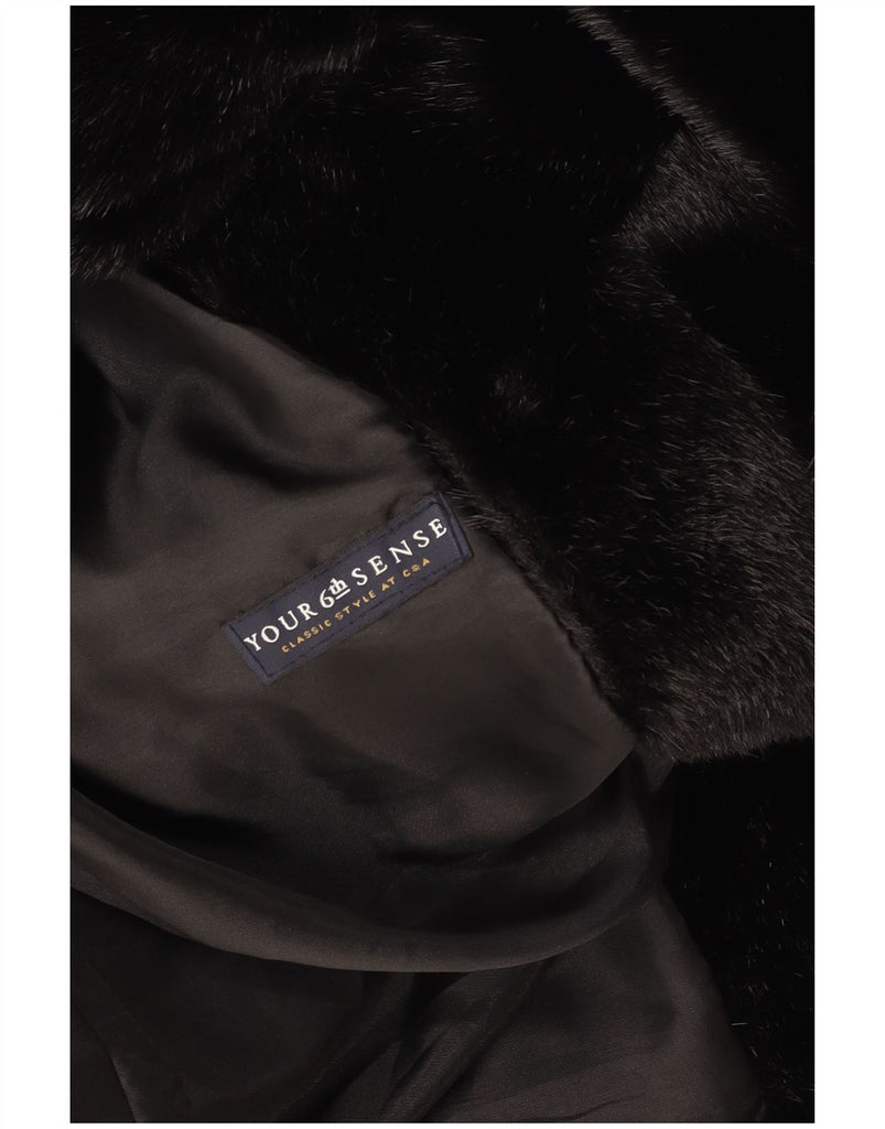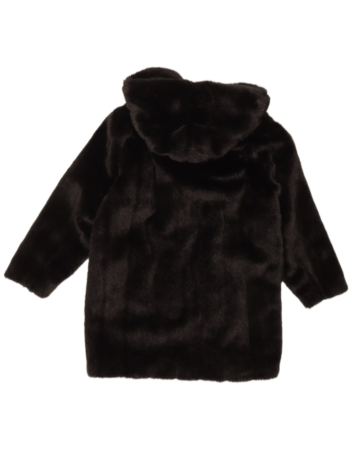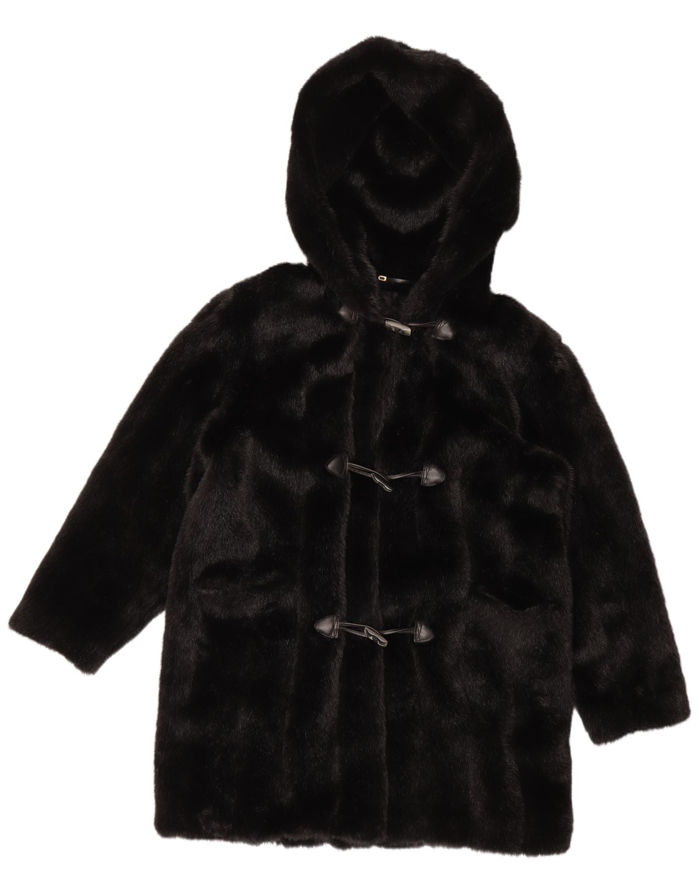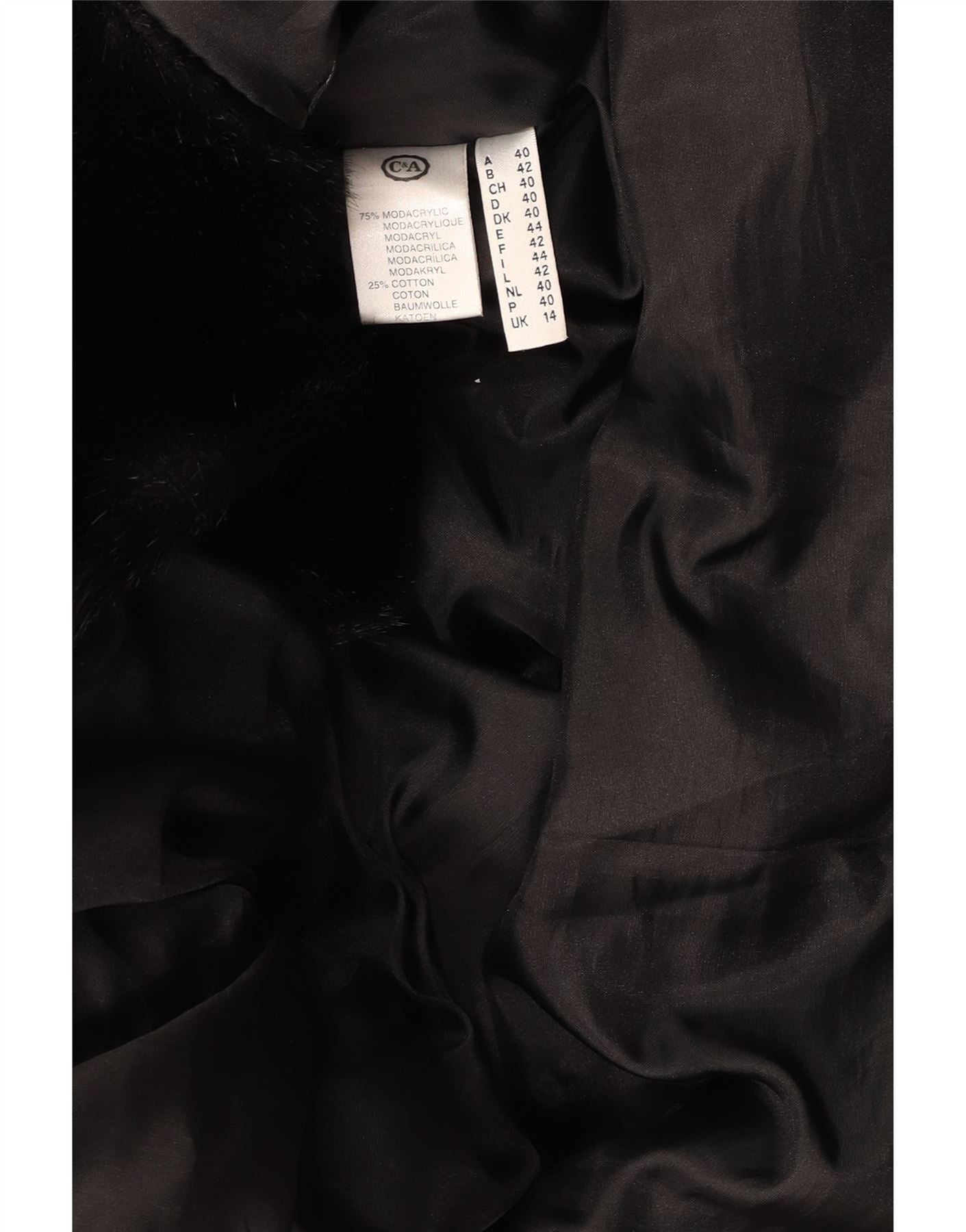 C&A Womens Hooded Faux Fur Duffle Coat UK 14 Medium Black Modacryl