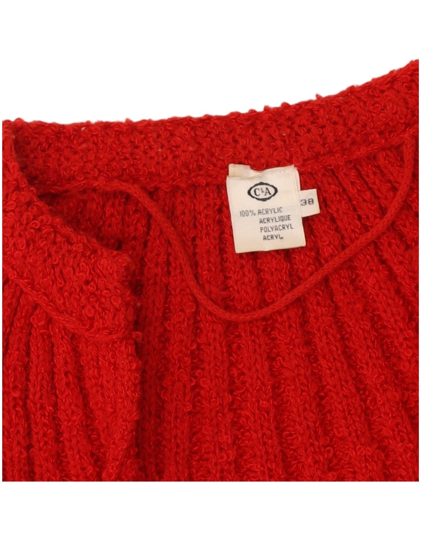 C&A Womens Longline Open Cardigan Sweater EU 38 Medium Red Acrylic