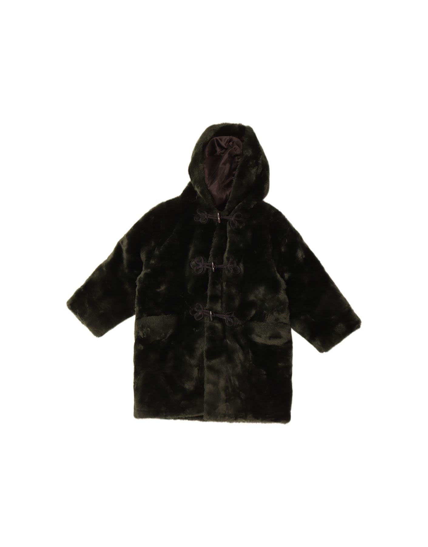 CACHAREL Womens Hooded Faux Fur Duffle Coat UK 8 Small Green Acrylic