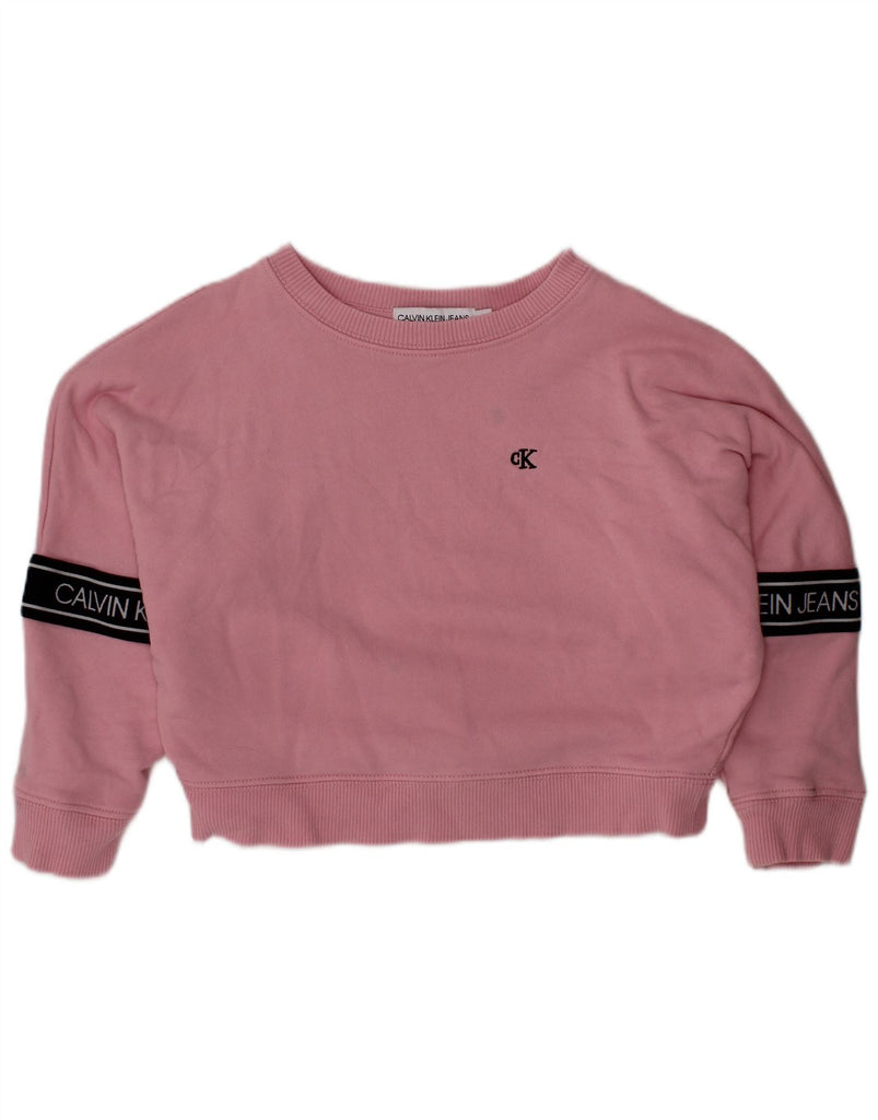 CALVIN KLEIN JEANS Girls Sweatshirt Jumper 3-4 Years Pink Colourblock