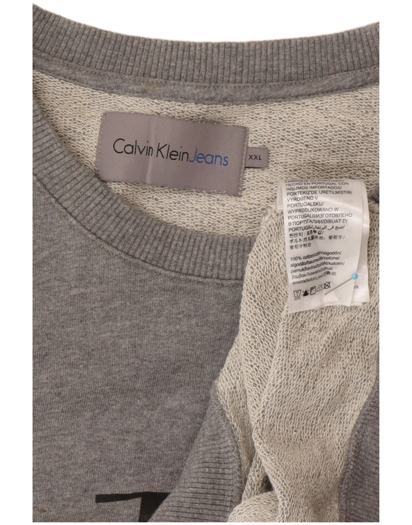 CALVIN KLEIN JEANS Mens Graphic Sweatshirt Jumper 2XL Grey Cotton