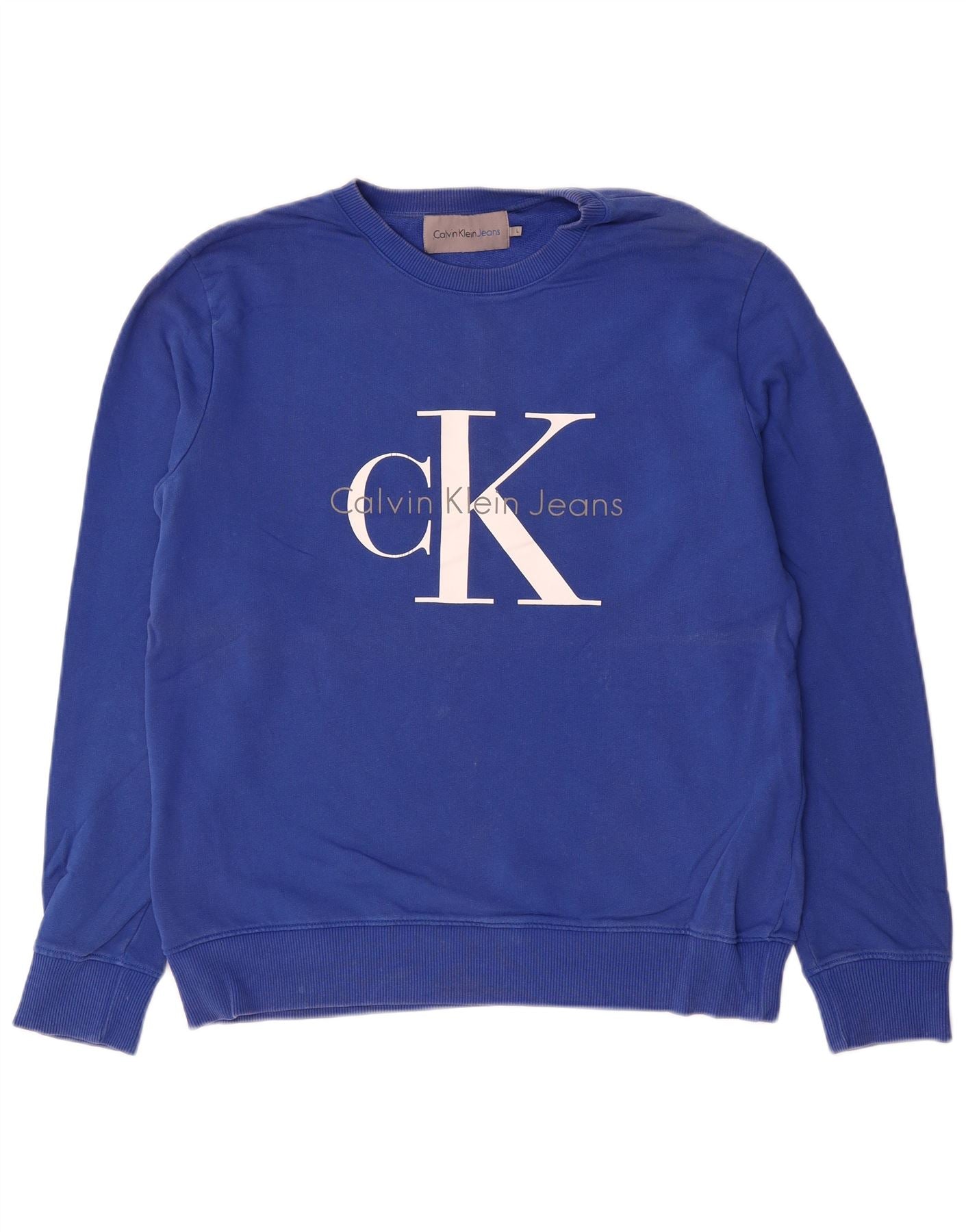 CALVIN KLEIN JEANS Mens Graphic Sweatshirt Jumper Large Blue Cotton