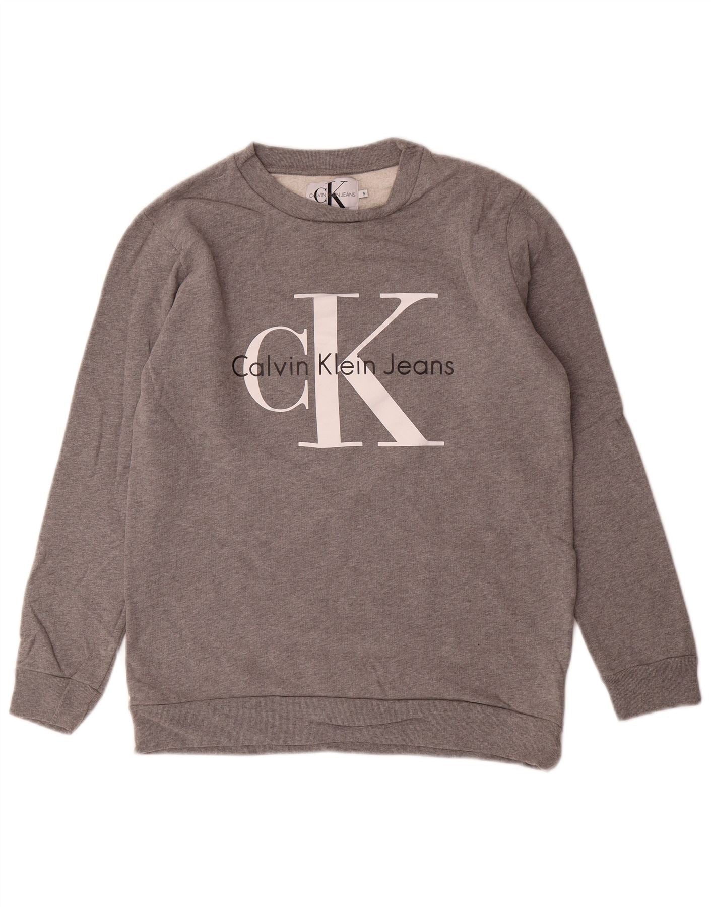 CALVIN KLEIN JEANS Mens Graphic Sweatshirt Jumper Small Grey Cotton
