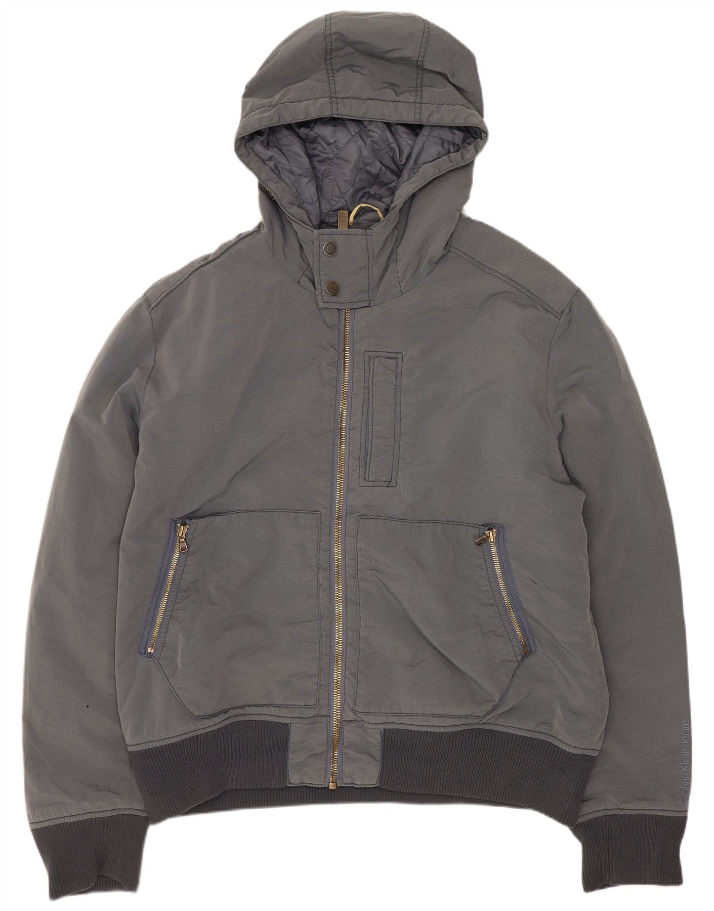 Calvin Klein Jeans Mens Hooded Bomber Jacket UK 44 2XL Grey Polyester