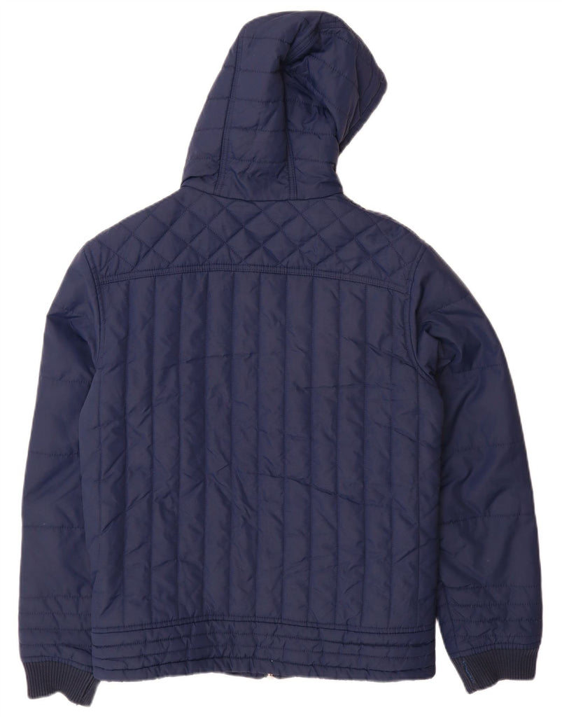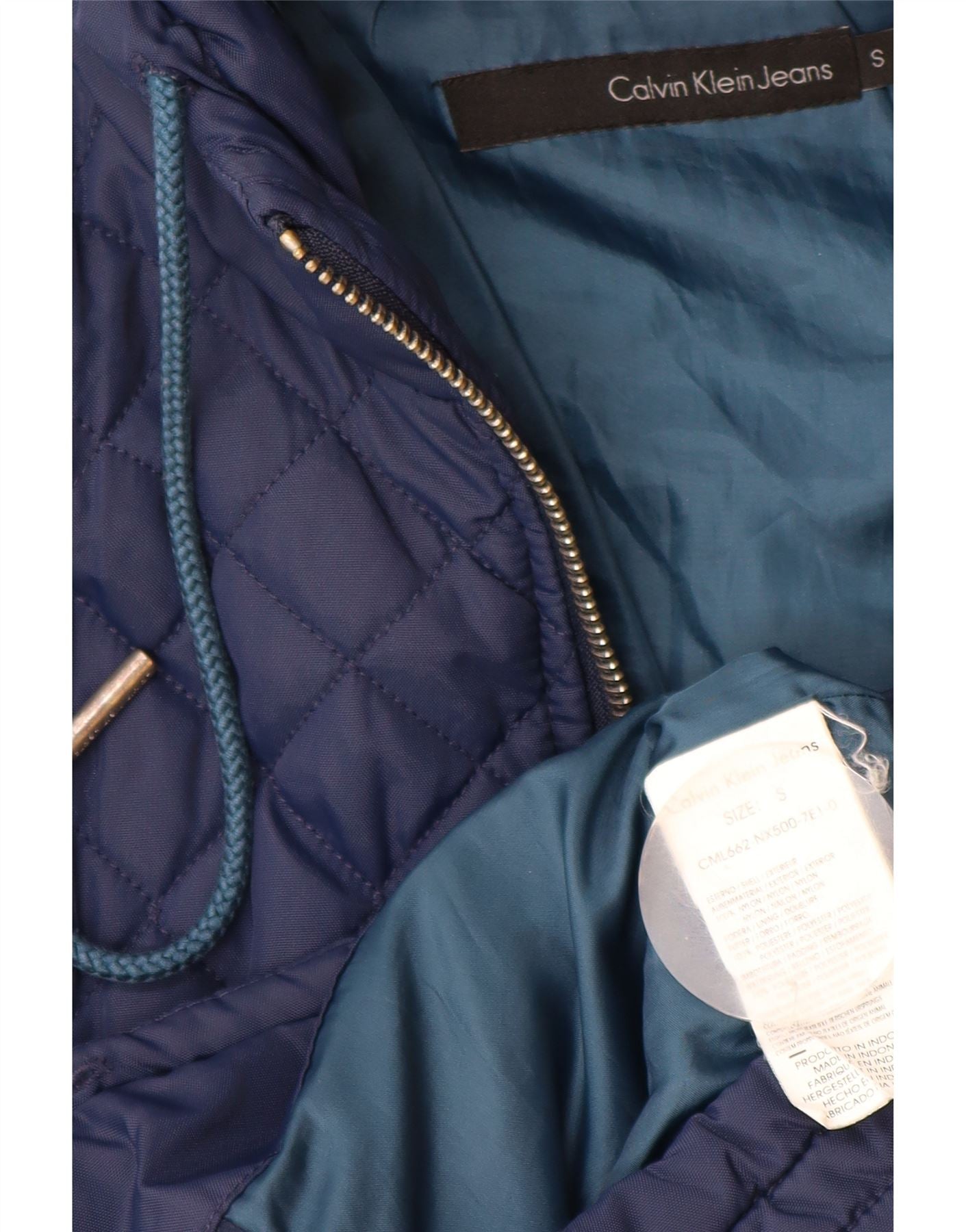 CALVIN KLEIN JEANS Mens Hooded Quilted Jacket UK 36 Small Navy Blue Nylon