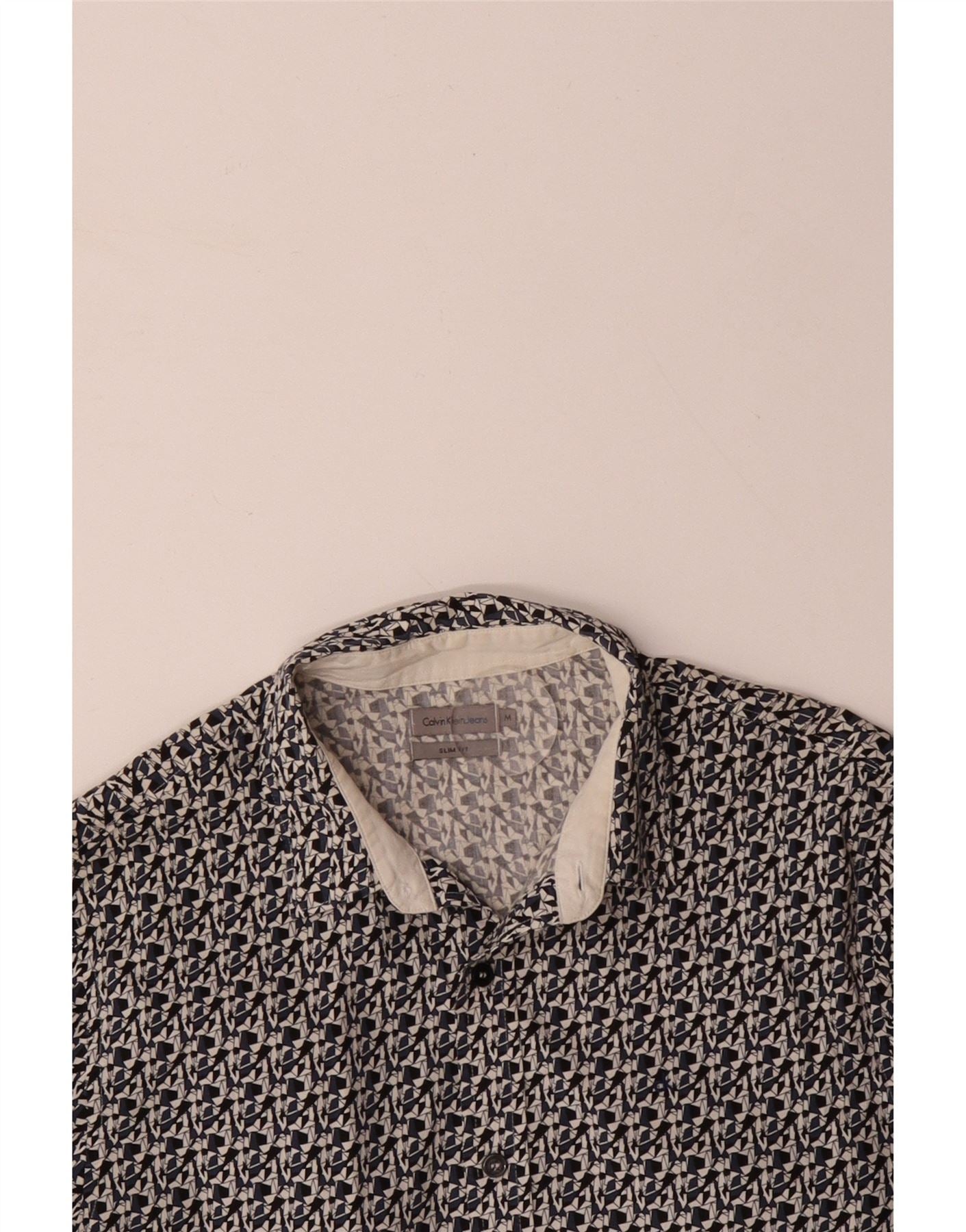 CALVIN KLEIN JEANS Mens Slim Fit Shirt Medium Black Geometric Cotton