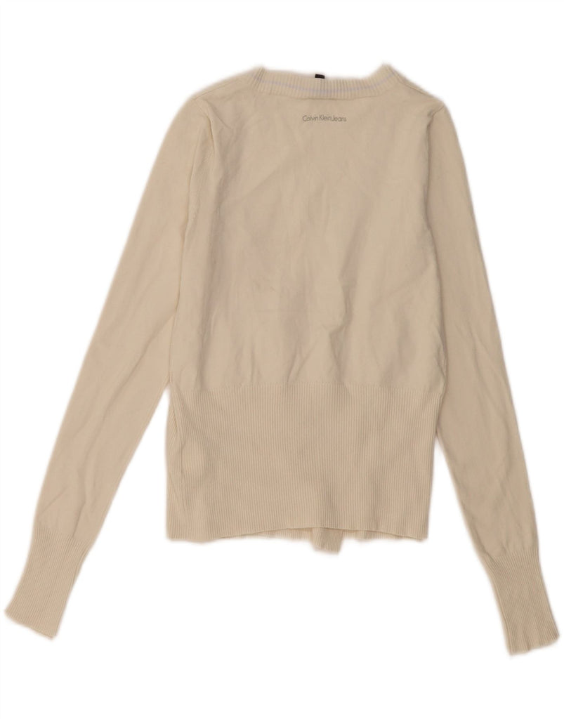 CALVIN KLEIN JEANS Womens Crop Cardigan Sweater UK 12 Medium White Viscose