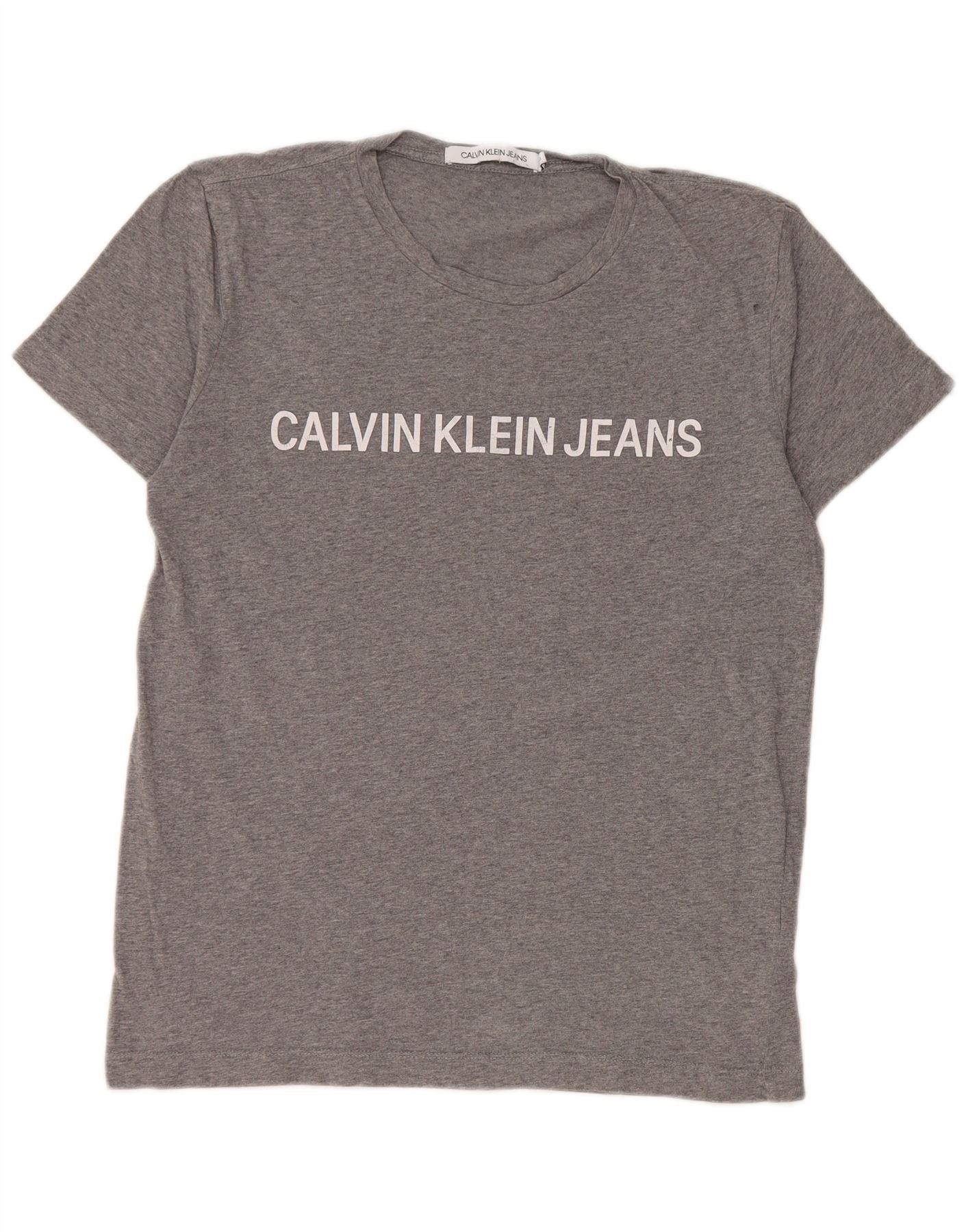 CALVIN KLEIN JEANS Womens Graphic T-Shirt Top UK 14 Medium Grey Cotton