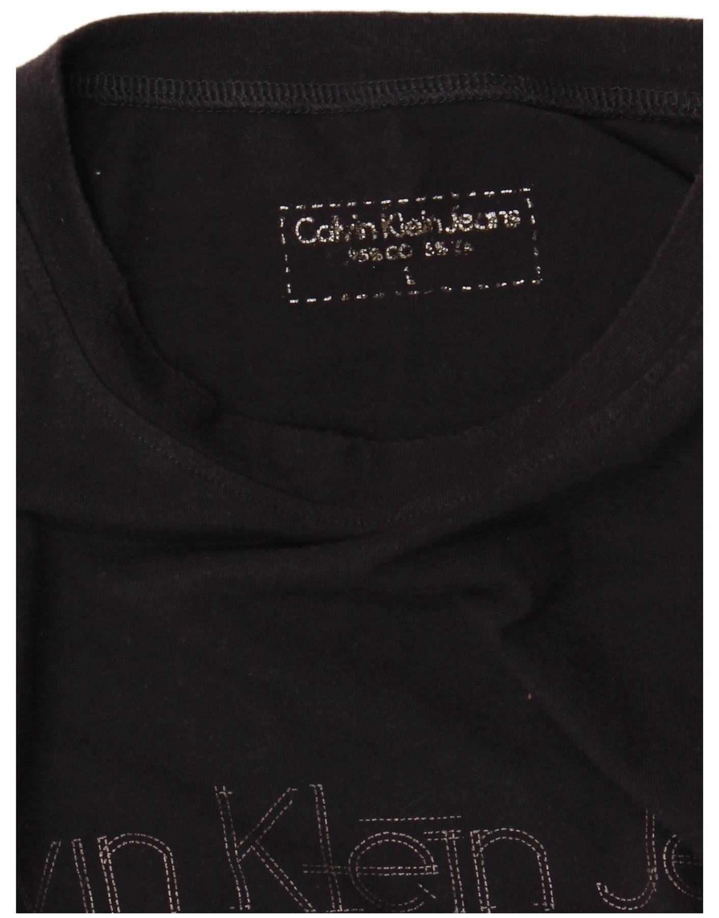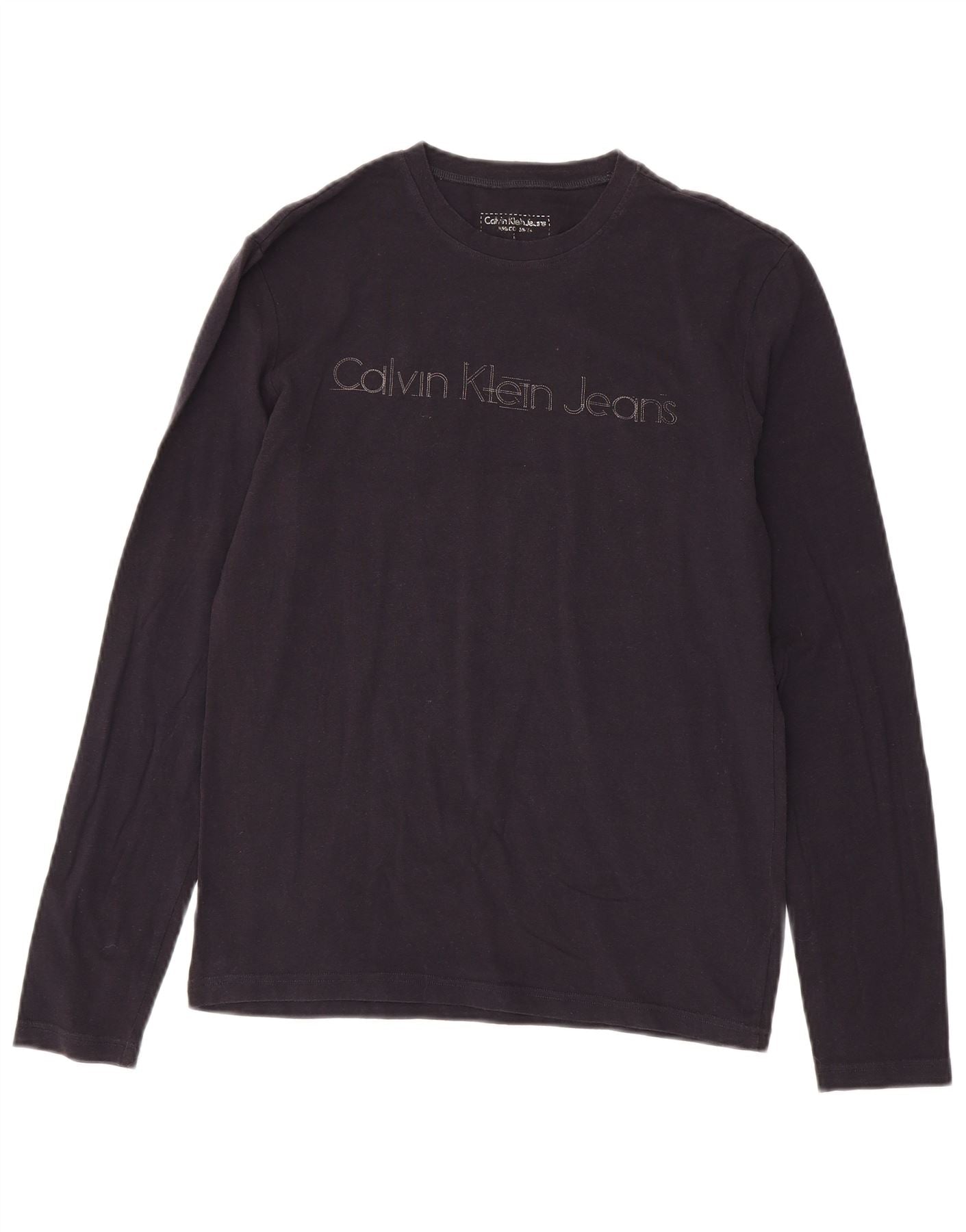 CALVIN KLEIN JEANS Womens Graphic Top Long Sleeve UK 14 Large Navy Blue