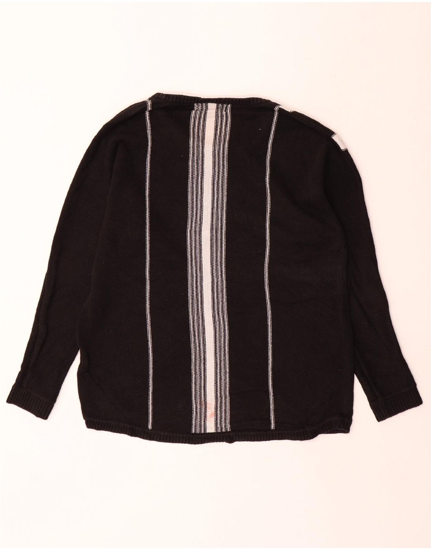 CALVIN KLEIN Mens Boat Neck Jumper Sweater Medium Black Striped Cotton