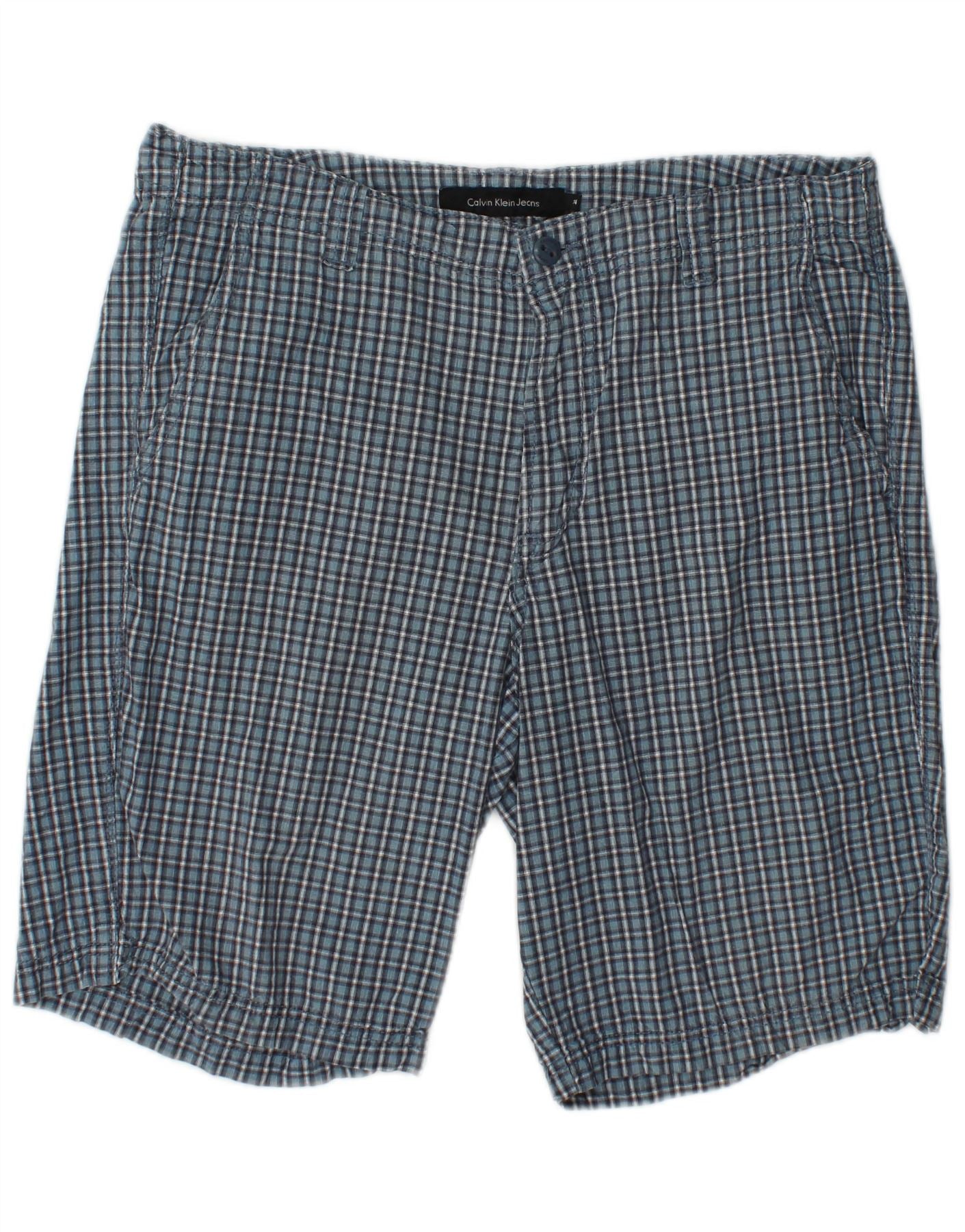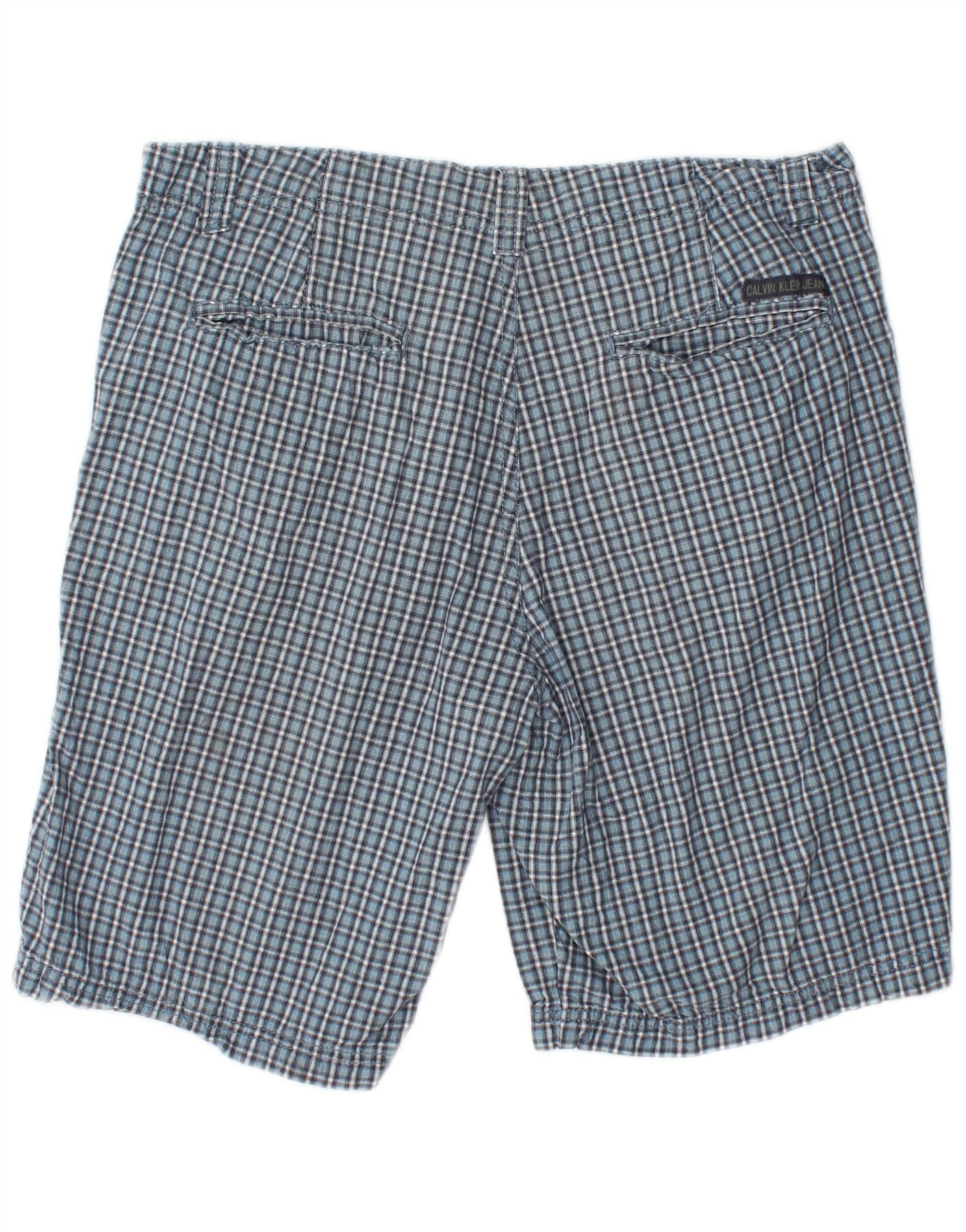 CALVIN KLEIN Mens Chino Shorts W34 Large Blue Check Cotton