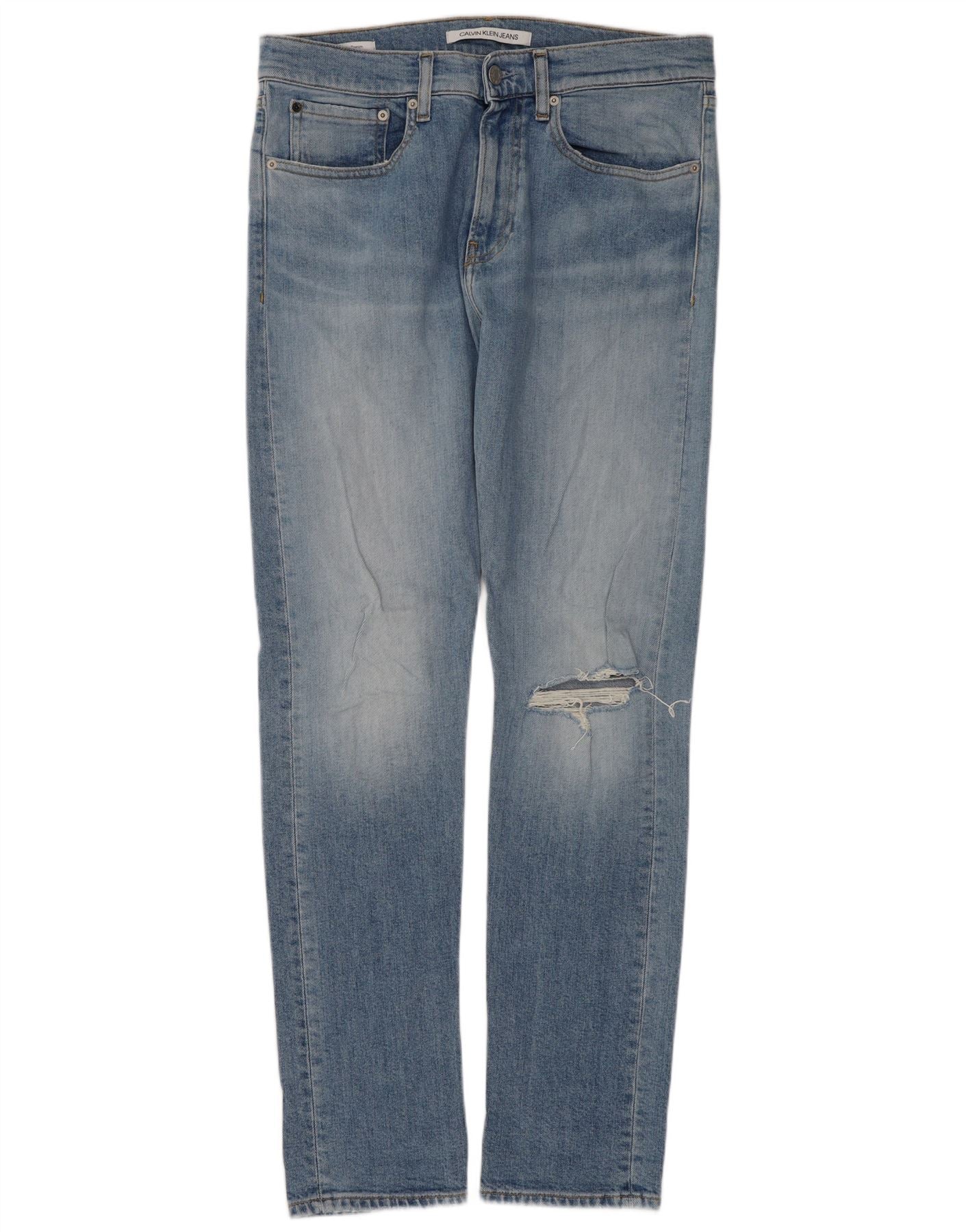 CALVIN KLEIN Mens Distressed Slim Jeans W31 L32 Blue Cotton