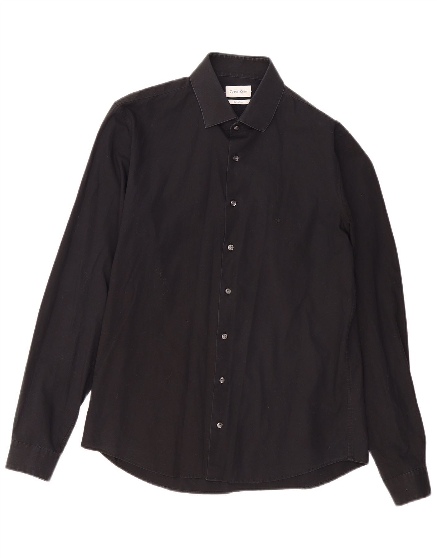 CALVIN KLEIN Mens Extra Slim Fit Shirt Size 40 15 3/4 Medium Black Cotton