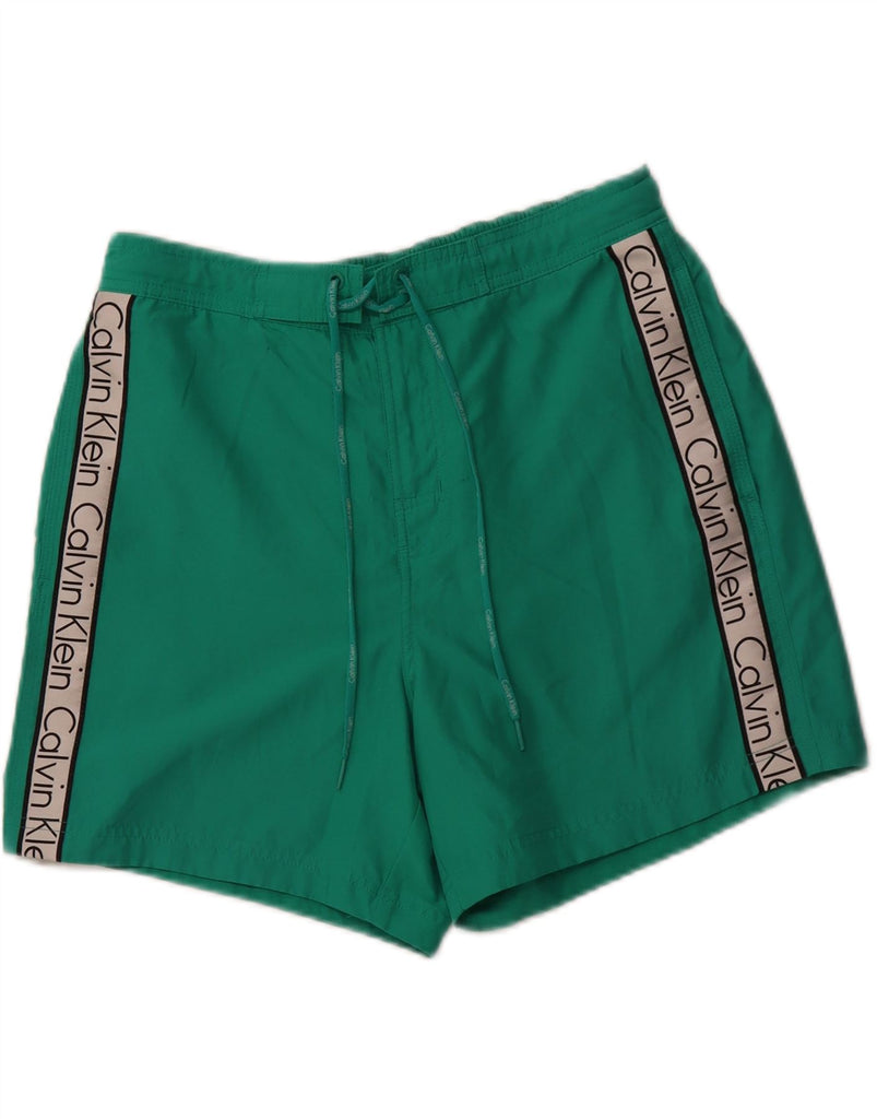 CALVIN KLEIN Mens Graphic Swimming Shorts Medium Green Colourblock