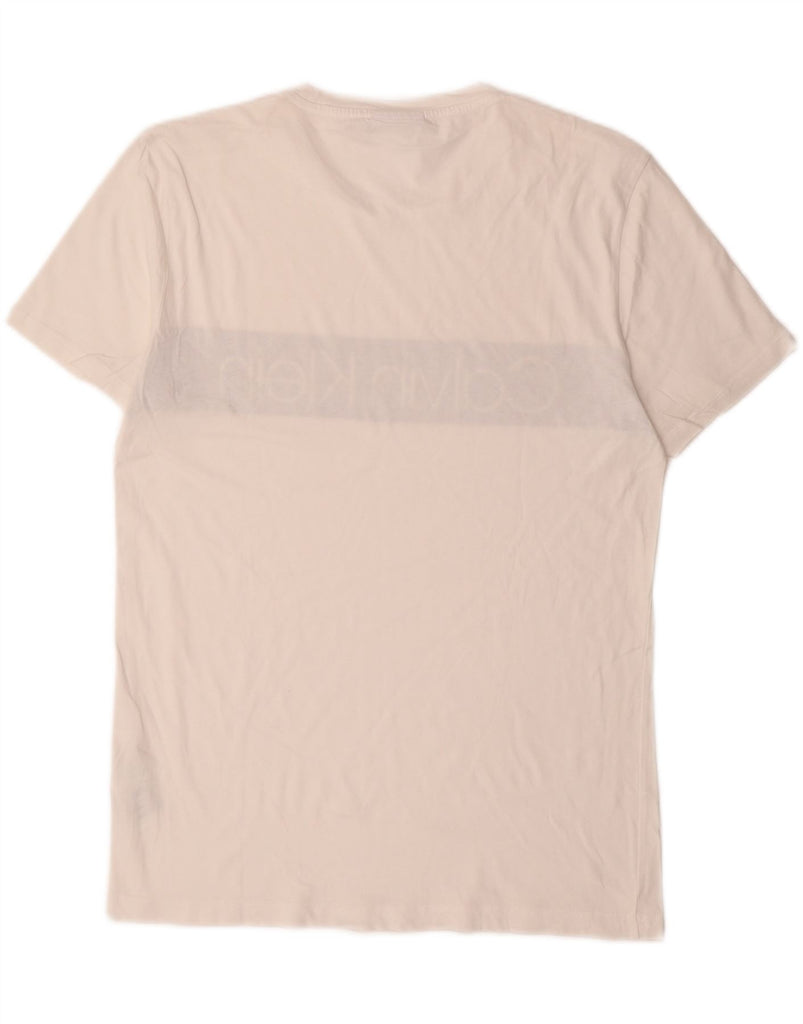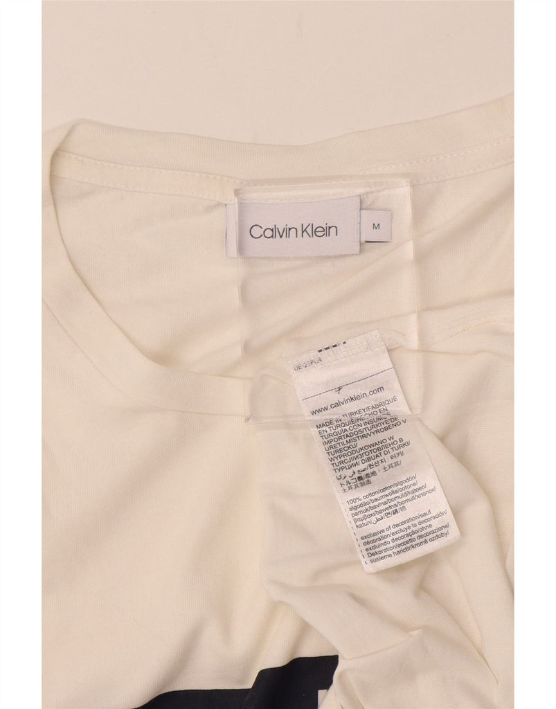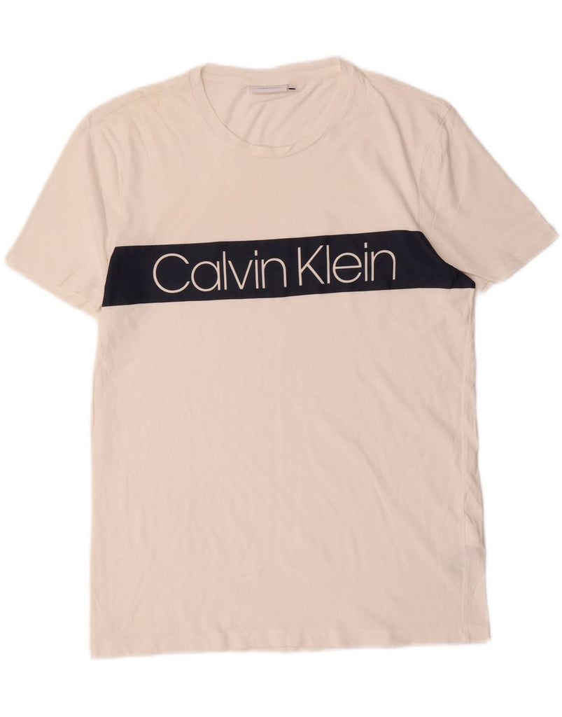 CALVIN KLEIN Mens Graphic T-Shirt Top Medium White Colourblock Cotton