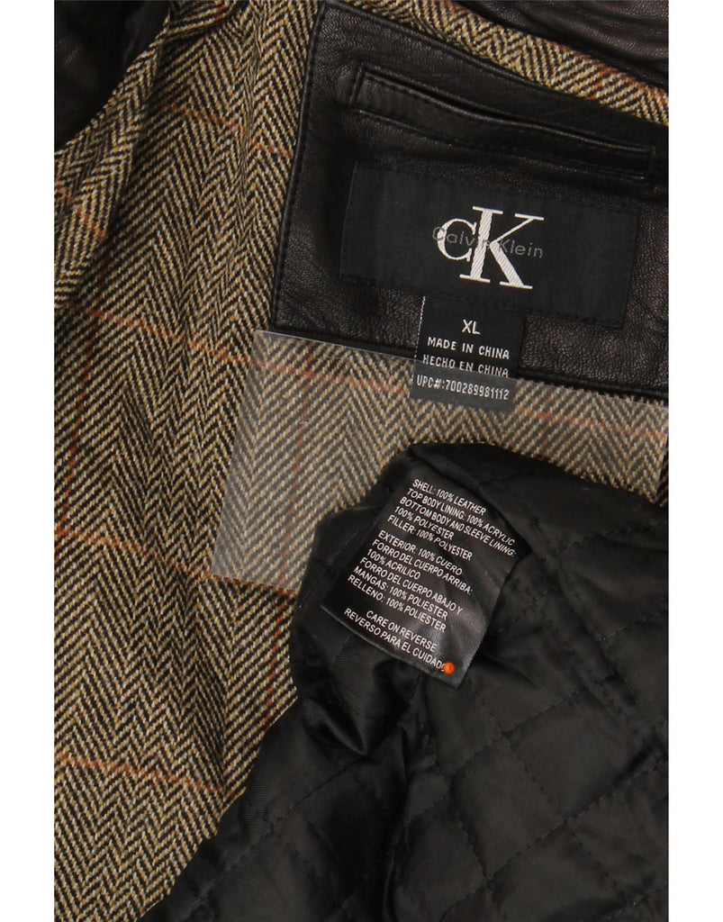 CALVIN KLEIN Mens Leather Jacket UK 42 XL Black Leather
