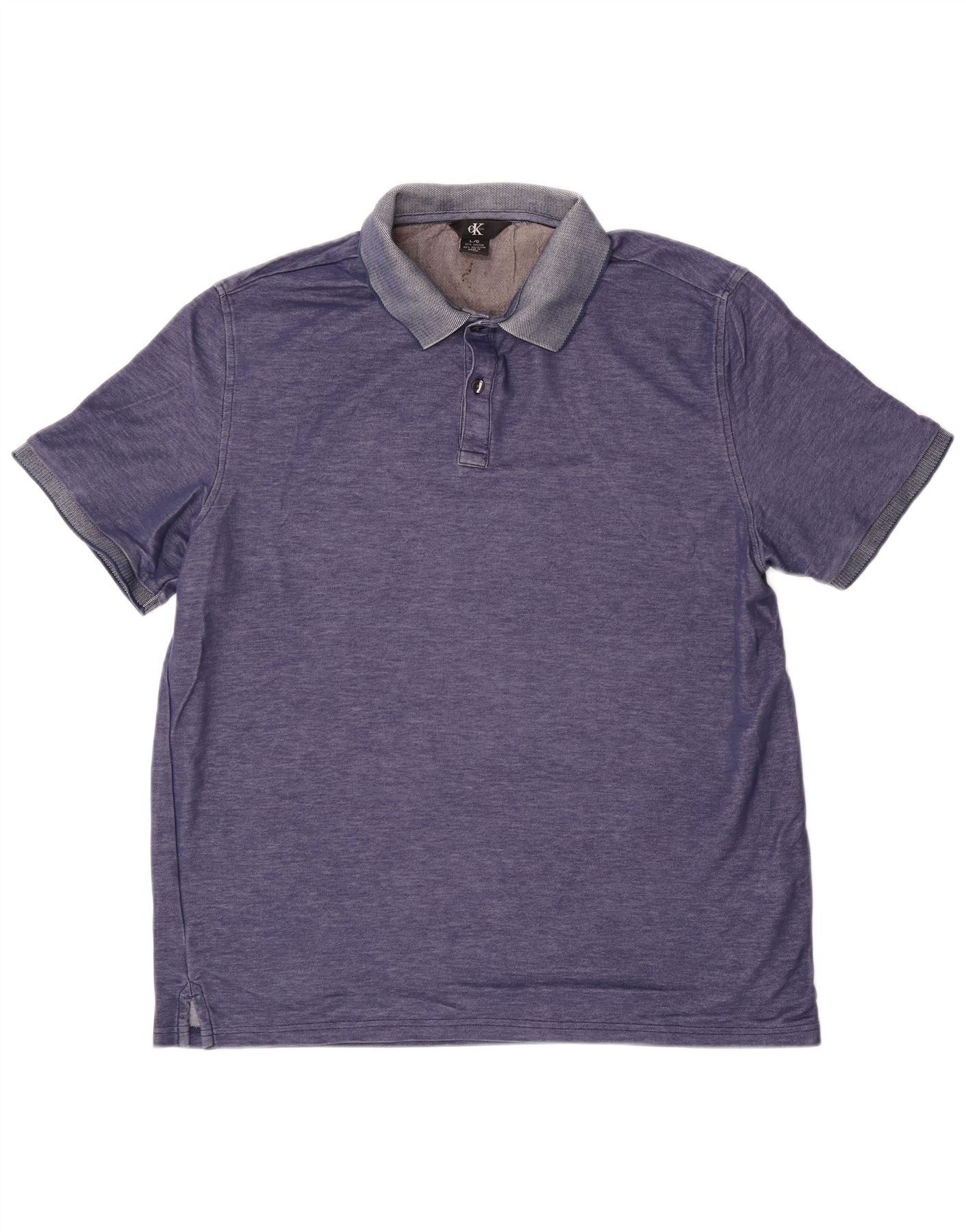 CALVIN KLEIN Mens Polo Shirt Large Blue Cotton