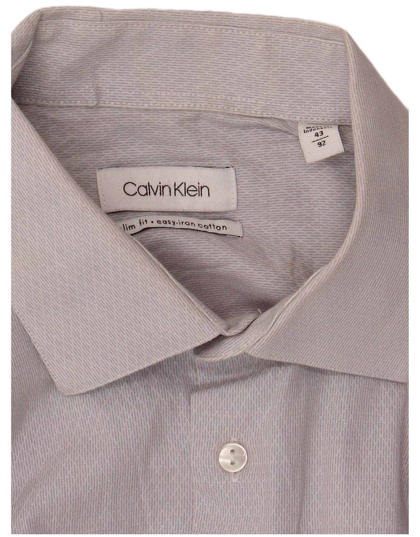 CALVIN KLEIN Mens Slim Fit Shirt Size 43 Large Grey Pinstripe Cotton