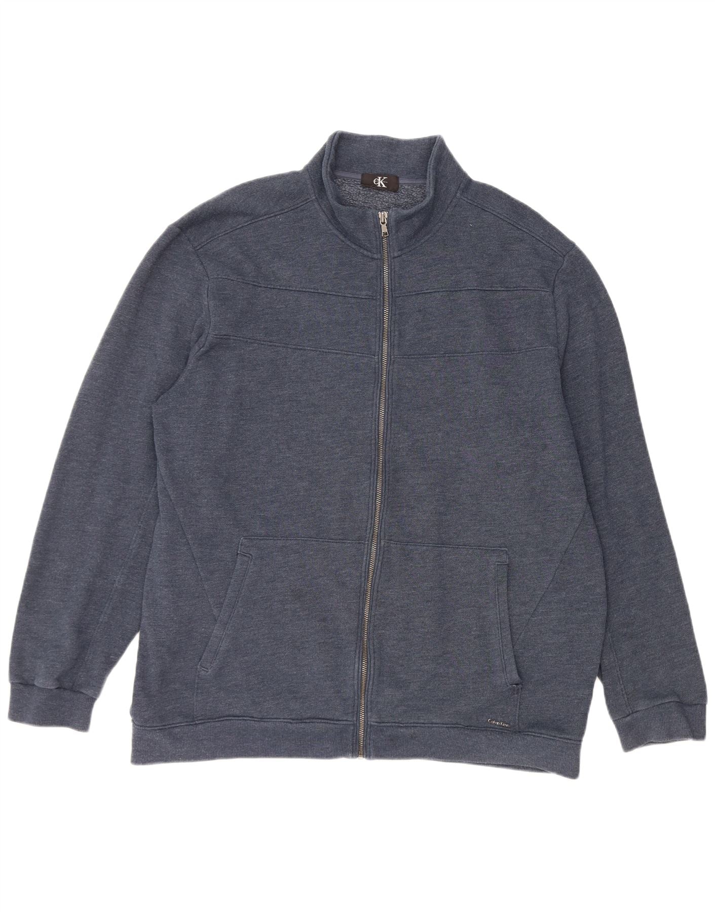 - AI Description: This Calvin Klein mens sweatshirt jumper is crafted from soft navy blue fleece fabric. It features a high neck and a full zip closure for versatile wear. Long sleeves and a regular fit ensure comfort. Two front pockets add practicality. A subtle Calvin Klein logo provides a signature accent. This modern piece offers both warmth and style.
