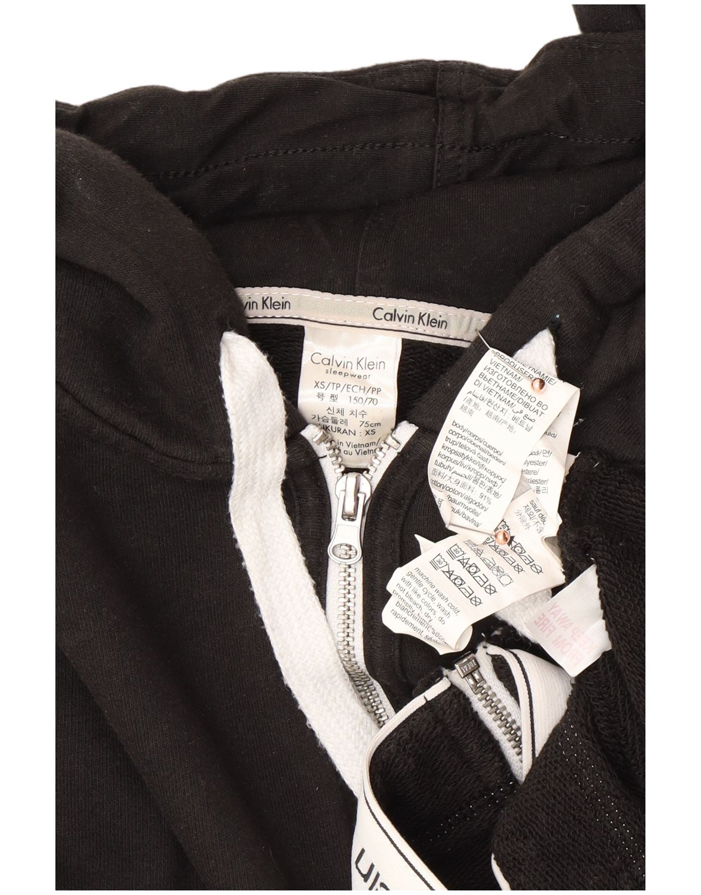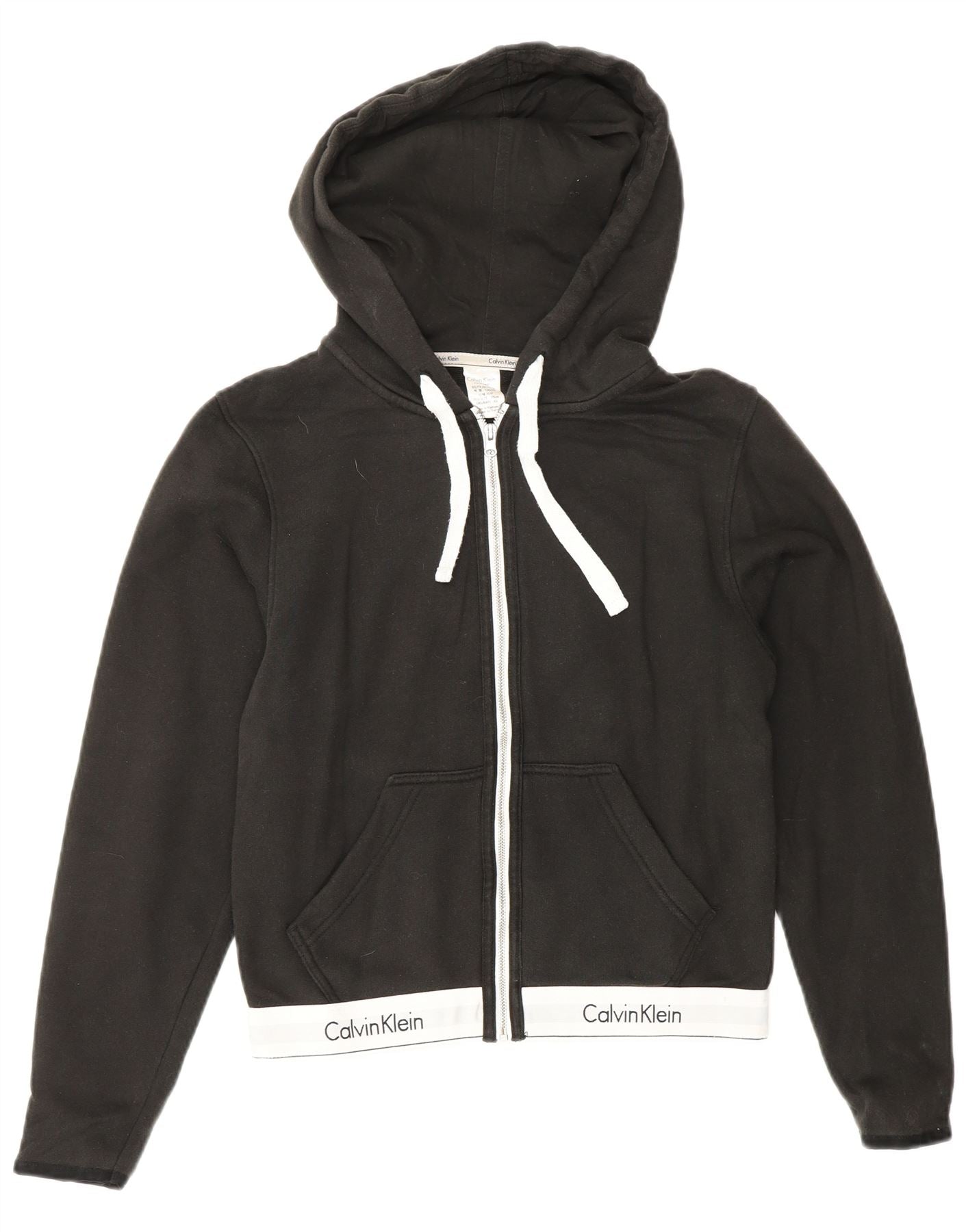 CALVIN KLEIN Womens Crop Zip Hoodie Sweater UK 6 XS Black Colourblock