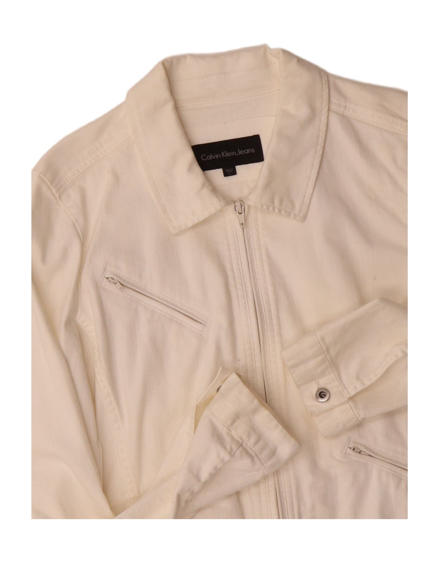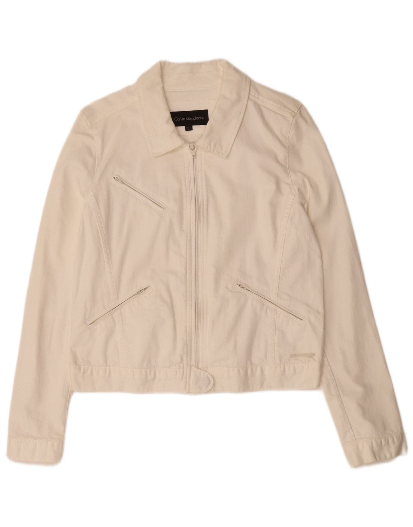 CALVIN KLEIN Womens Denim Jacket UK 16 Large White Cotton