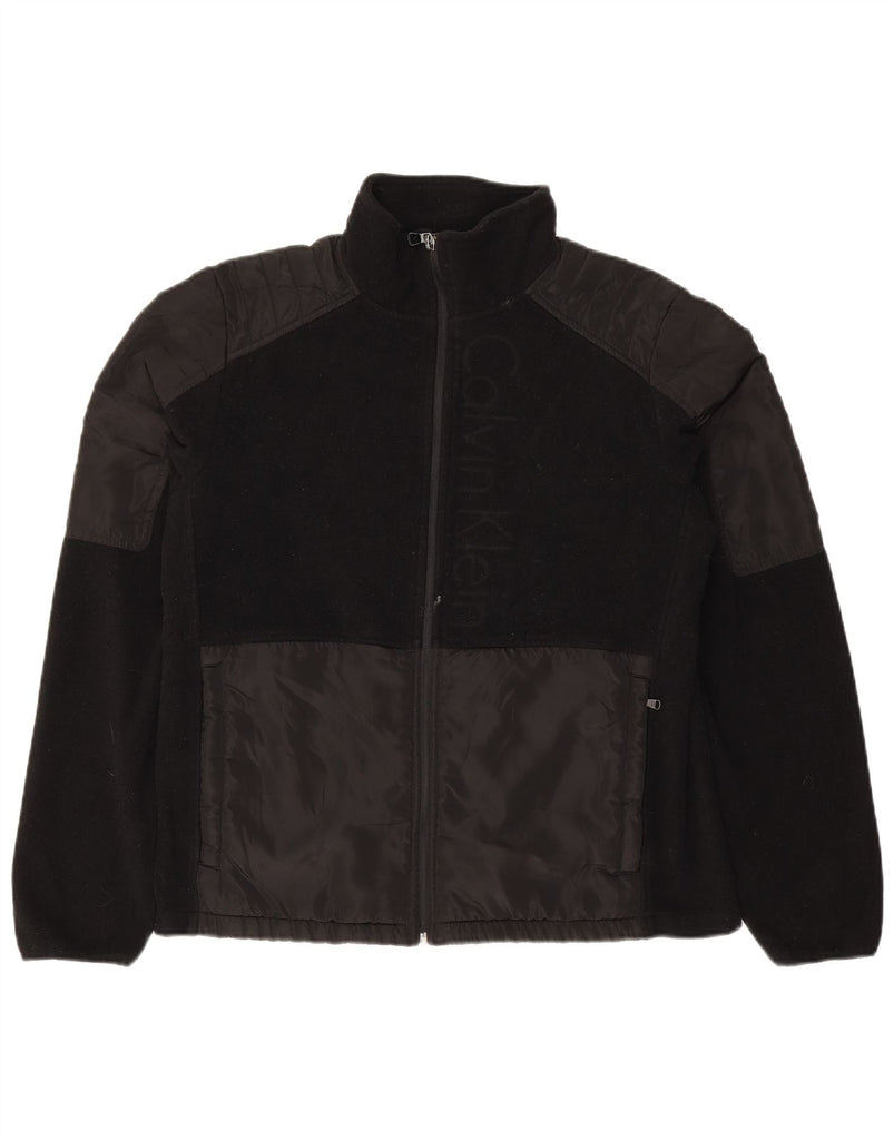 CALVIN KLEIN Womens Graphic Fleece Jacket UK 14 Medium Black Polyester