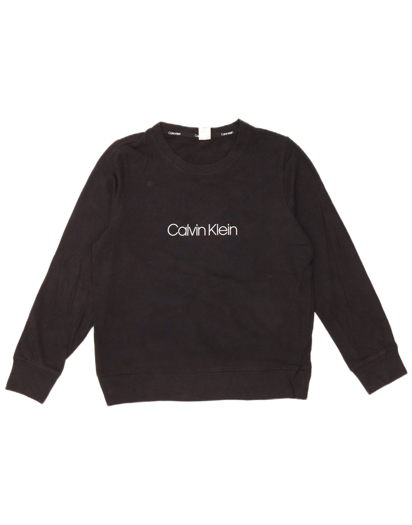 CALVIN KLEIN Womens Graphic Sweatshirt Jumper UK 14 Medium Black Cotton
