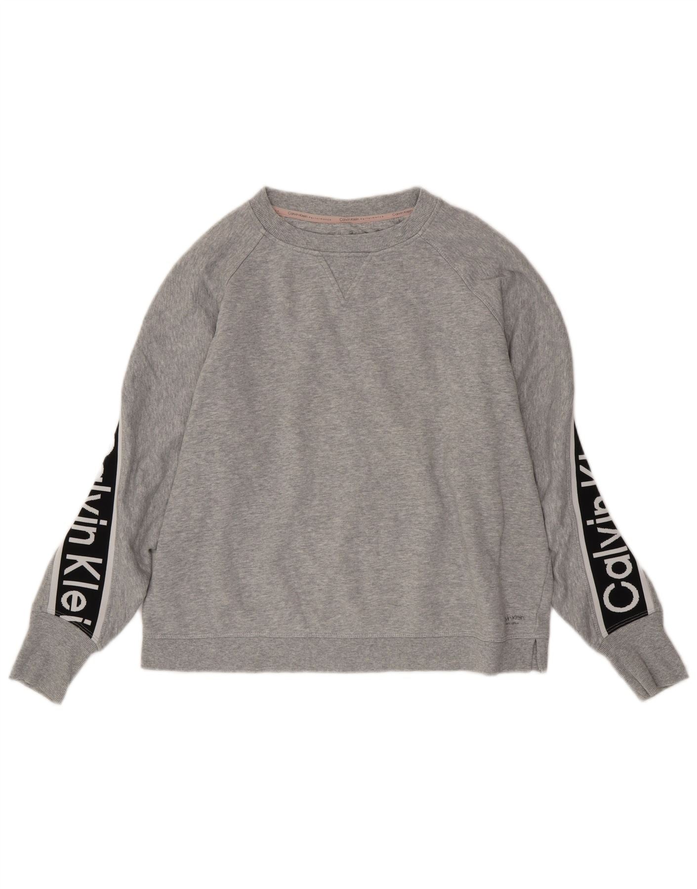 Home > Women's > Depop Clothing > CALVIN KLEIN Womens Graphic Sweatshirt Jumper UK 18 XL Grey Colourblock