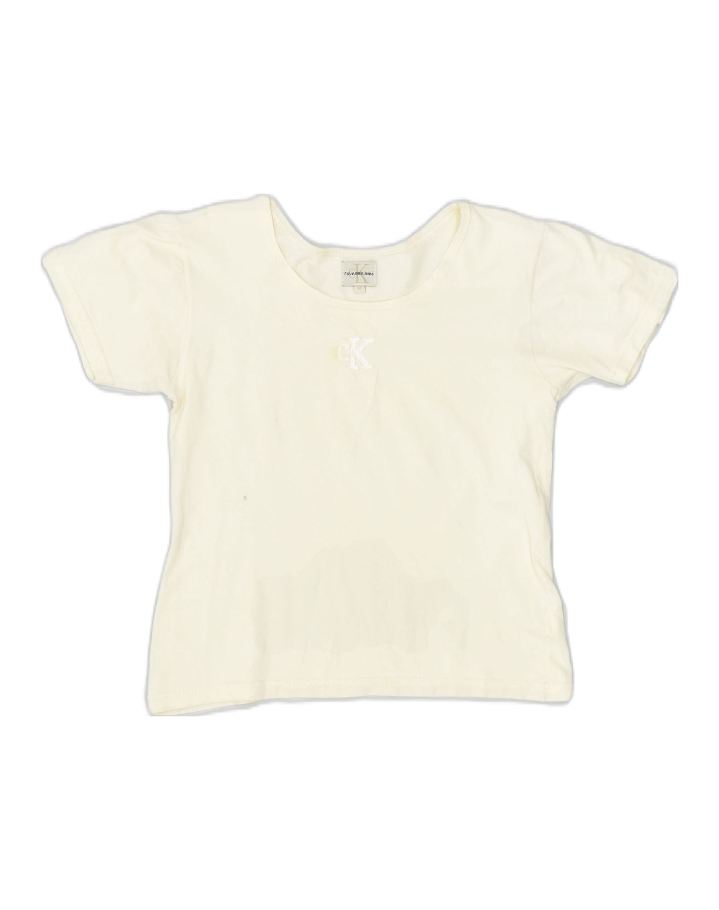 CALVIN KLEIN Womens Graphic T-Shirt Top UK 12 Medium Off White