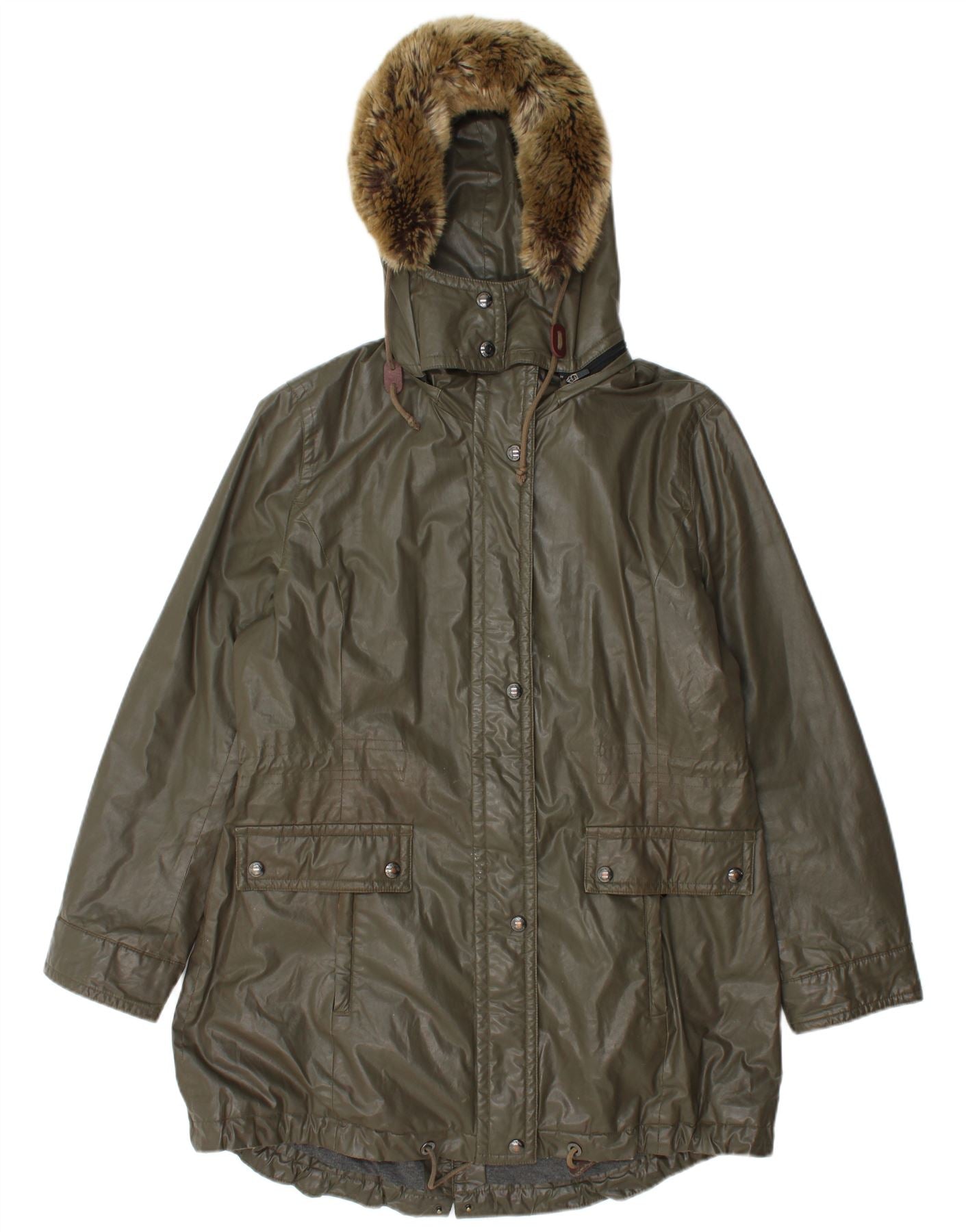 CALVIN KLEIN Womens Hooded Parka Jacket UK 16 Large Khaki Cotton