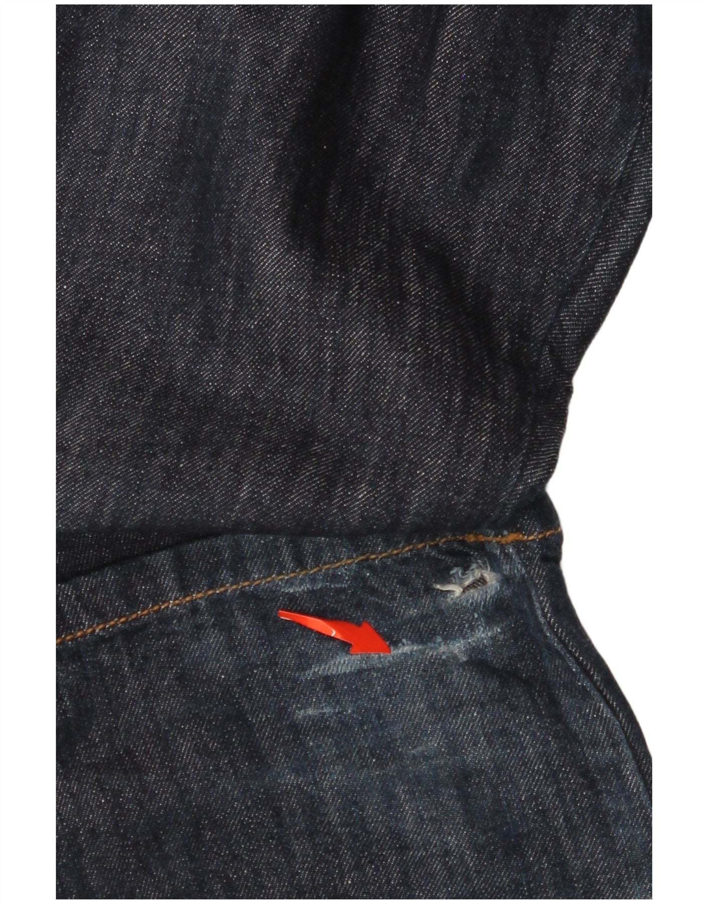 - Condition: Fair Used Condition: the item has been frequently worn and may have numerous flaws - Ripped material on hem.worn hems.
