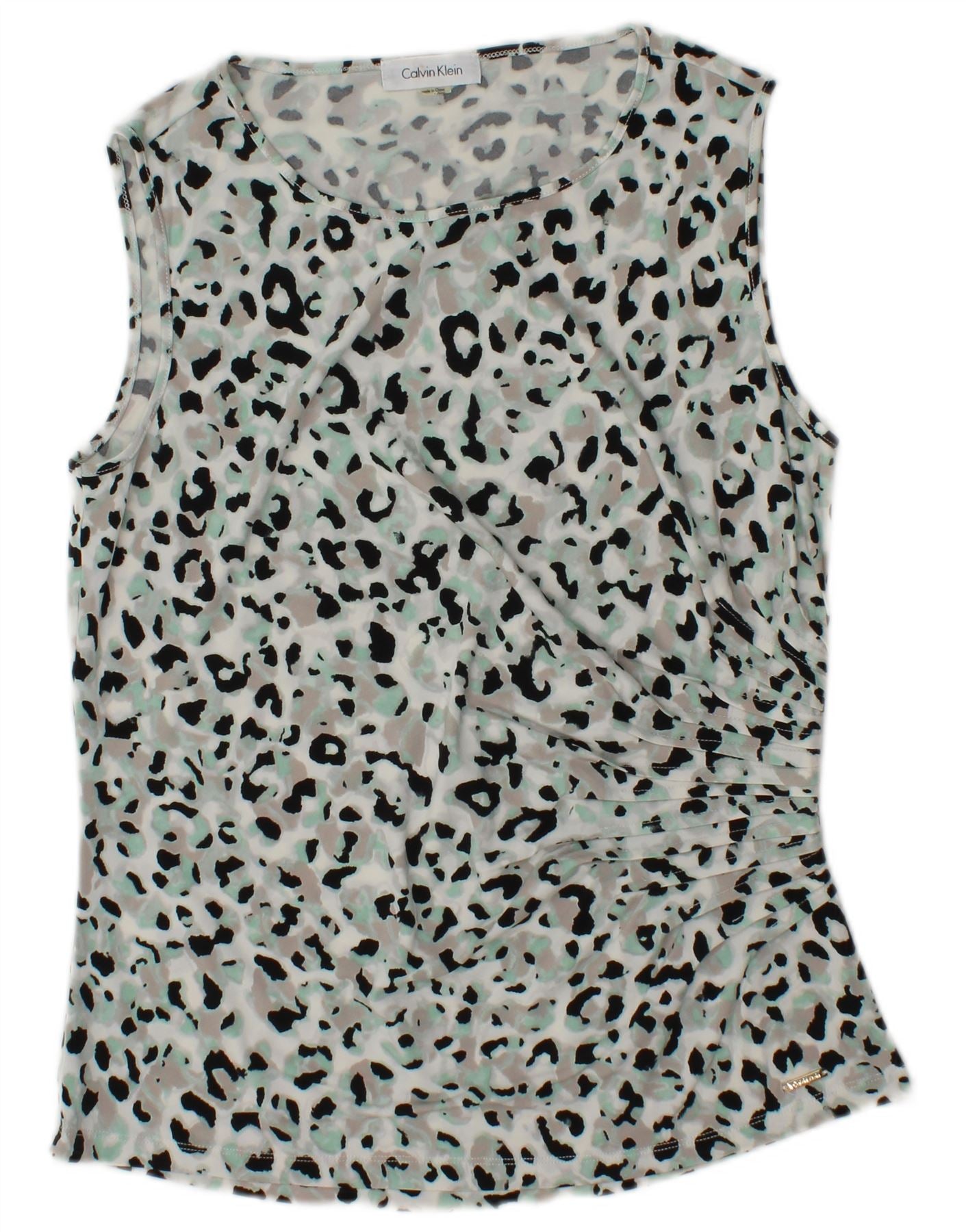 CALVIN KLEIN Womens Vest Top UK 12 Medium Multicoloured Animal Print