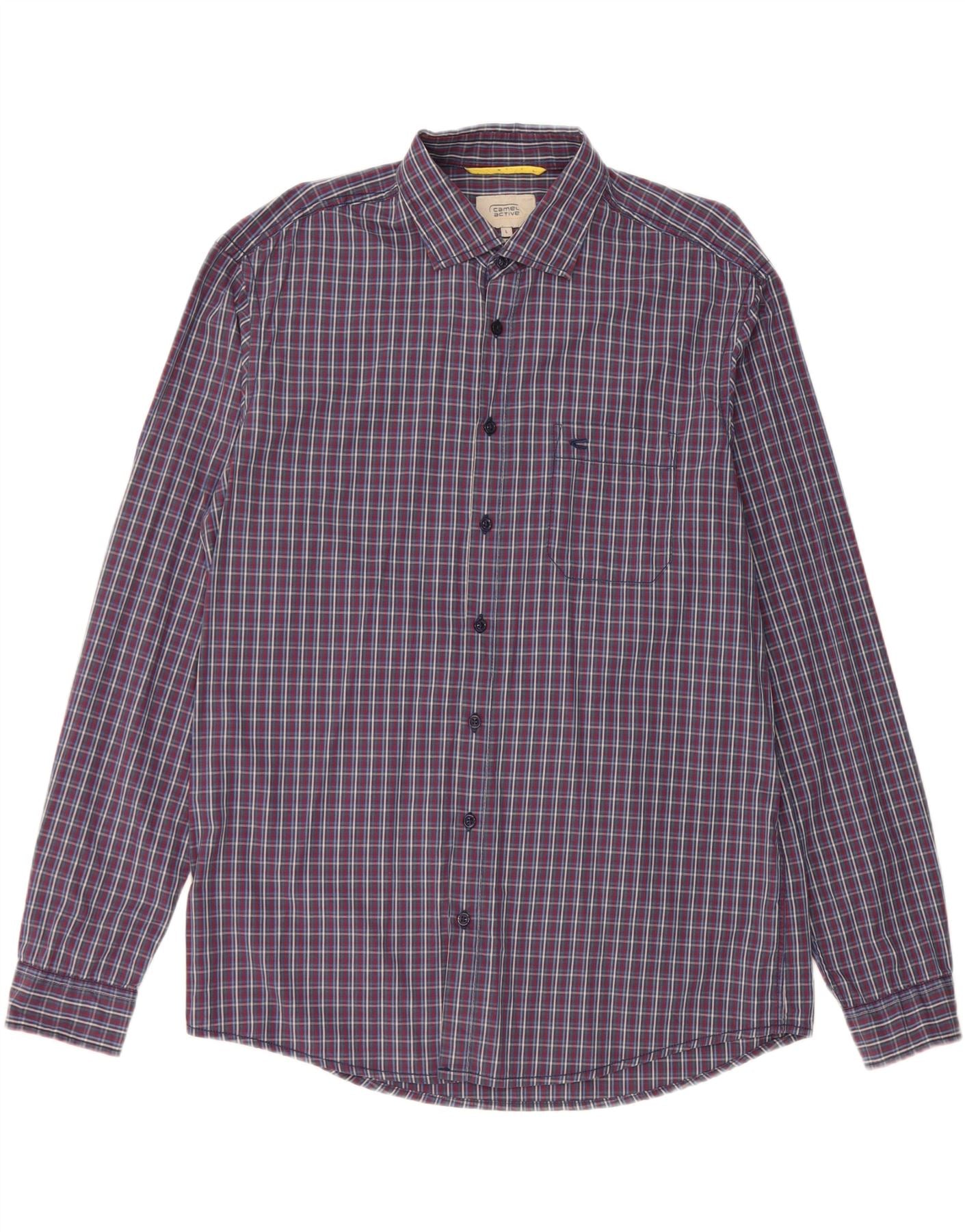 CAMEL ACTIVE Mens Regular Fit Shirt Large Navy Blue Check Cotton