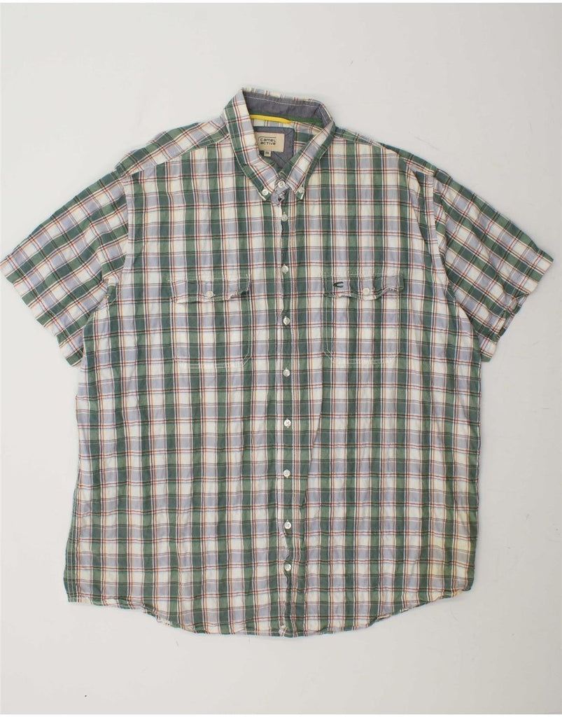 CAMEL Mens Short Sleeve Shirt 3XL Green Check Cotton