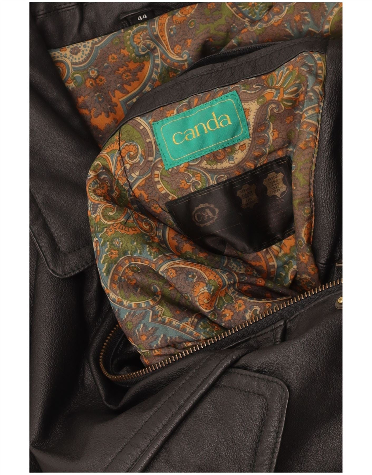 CANDA Mens Leather Jacket UK 44 2XL Black Leather