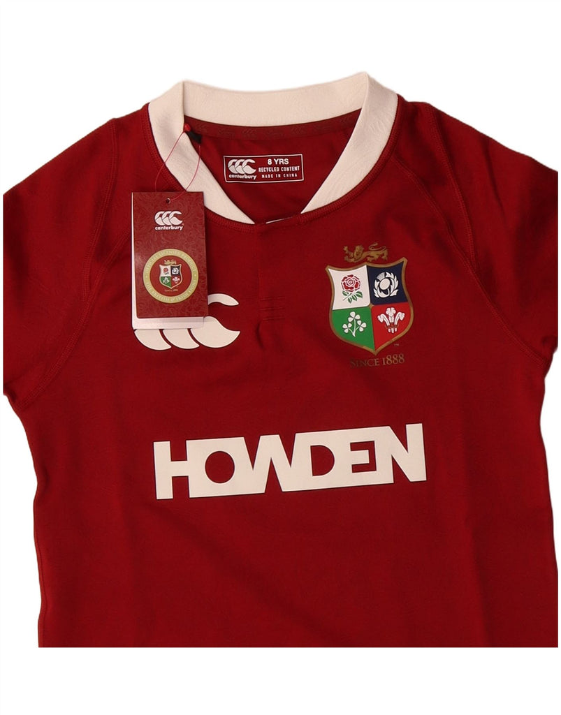 - AI Description: This Canterbury boys' Rugby Polo Shirt is crafted from breathable, lightweight jersey fabric. It comes in a rich maroon colour. The collared V-neckline offers a classic look. Short sleeves and a regular fit ensure comfort and ease of movement. A prominent British & Irish Lions logo accents the design, perfect for young rugby enthusiasts. This pullover style is both practical and stylish.