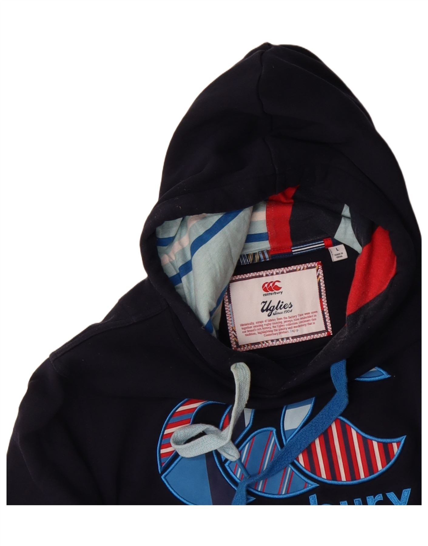 - AI Description: This Canterbury mens Hoodie Jumper is presented in a classic navy blue fleece fabric. The soft fleece offers warmth and comfort. It features a hooded design and long sleeves. The pullover style ensures ease of wear. A round neck provides a comfortable fit. The regular fit offers a relaxed silhouette. It includes practical pockets and a graphic logo accent, typical of the Uglies range. Ideal for sports or casual wear, especially rugby enthusiasts.