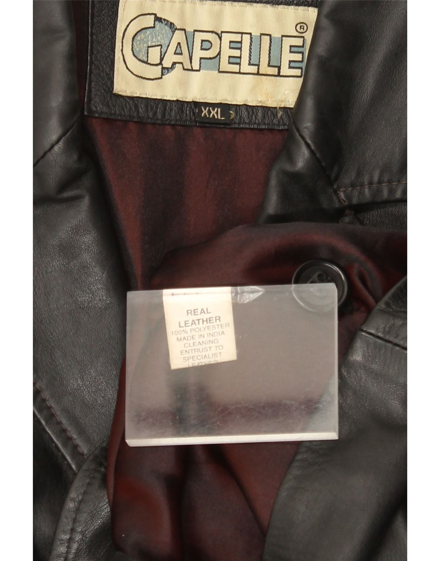 CAPELLE Mens 4 Button Leather Blazer Jacket UK 44 2XL Black Leather