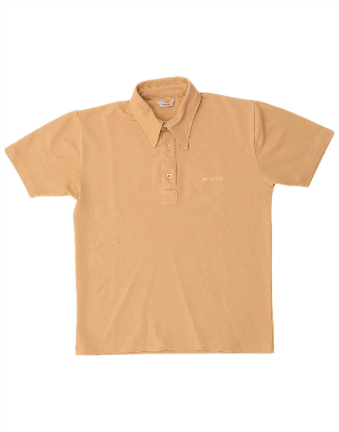 - AI Description: This Carhartt mens Polo Shirt is crafted from a comfortable beige knit fabric. It features a classic collared neckline and short sleeves. The button-up placket adds traditional detail. It offers a regular fit for everyday comfort. A subtle embroidered Carhartt logo adorns the chest. This versatile piece is perfect for a smart casual look.