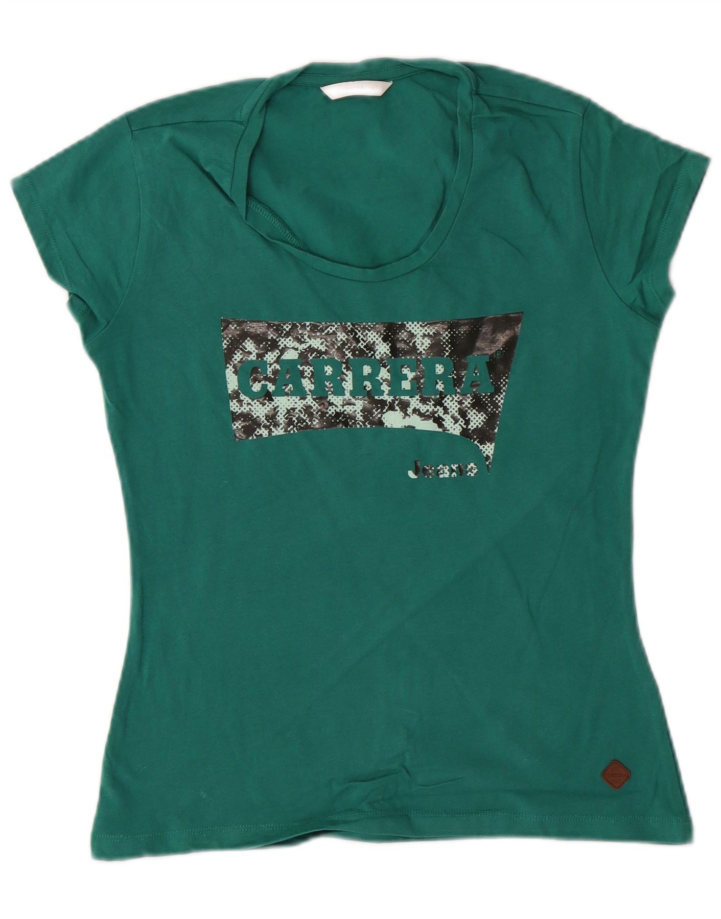 CARRERA Womens Graphic T-Shirt Top UK 10 Small Green Cotton