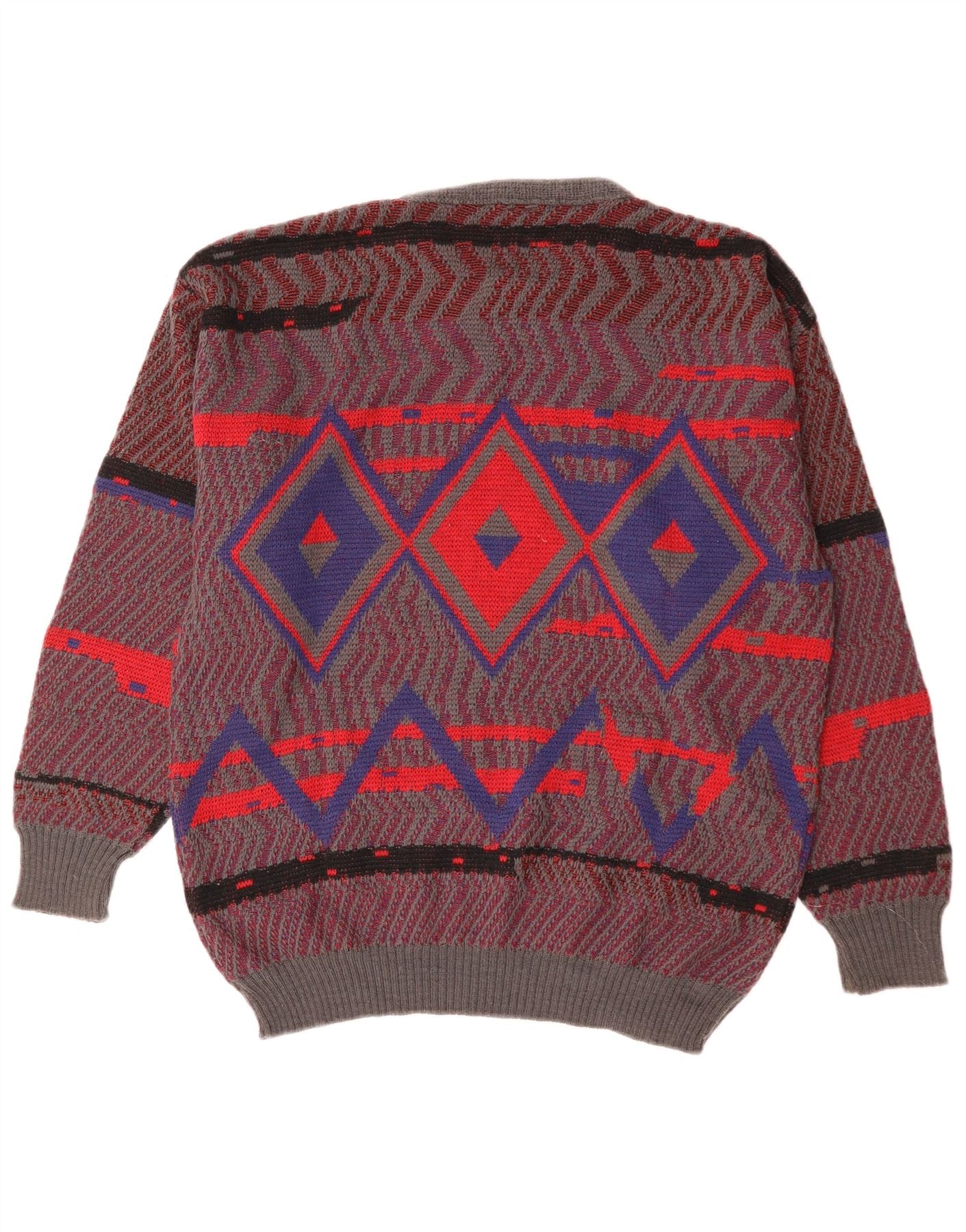 CASTELLO Mens Crew Neck Jumper Sweater IT 52 Large Red Argyle/Diamond Wool