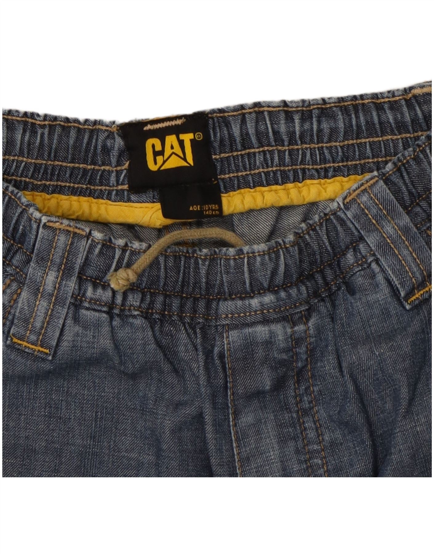 - AI Description: These CAT boys' cargo shorts are crafted from durable blue denim. They feature a relaxed fit for ultimate comfort, complete with an elasticated drawstring waist. Multiple practical pockets provide ample storage. A subtle brand logo adds a classic, authentic touch. This design is perfect for active wear, blending robust style with everyday functionality.