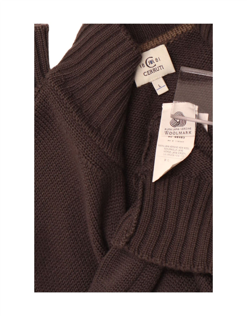 CERRUTI 1881 Mens Graphic Cardigan Sweater Large Grey Colourblock New Wool