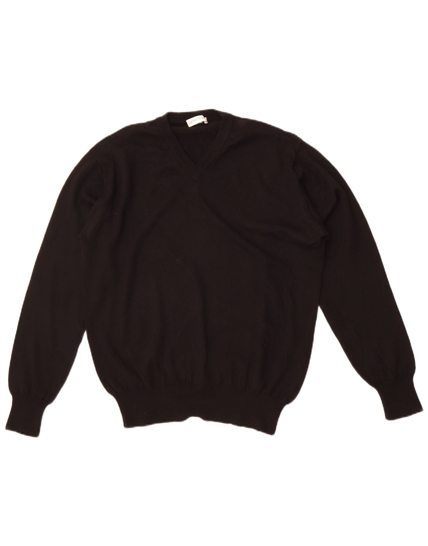 Cerruti 1881 Mens V-Neck Jumper Sweater IT 48 Medium Black Merino Wool