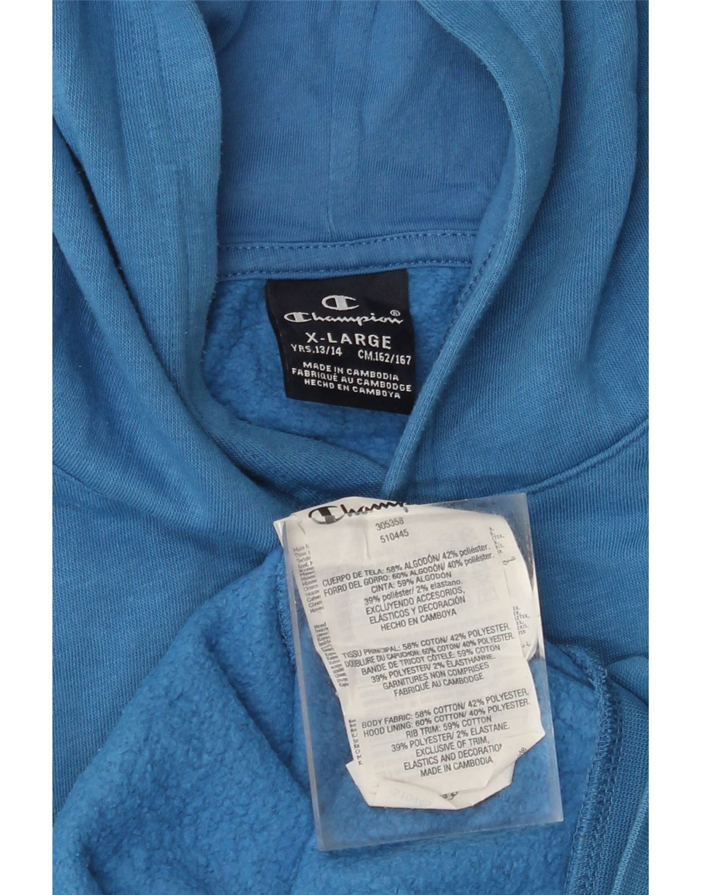 CHAMPION Boys Graphic Hoodie Jumper 13-14 Years XL Blue Cotton