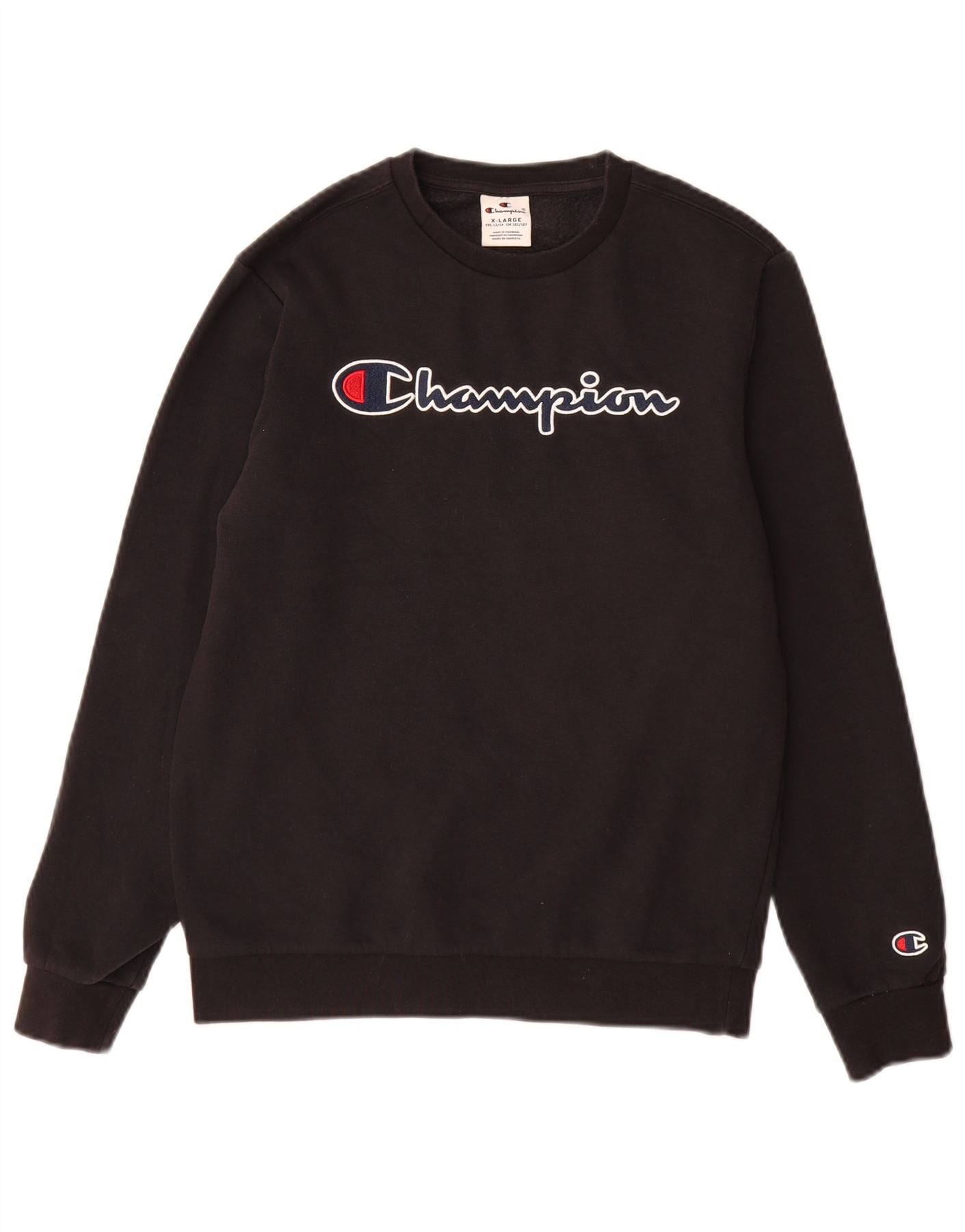 CHAMPION Boys Graphic Sweatshirt Jumper 13-14 Years XL Black Cotton